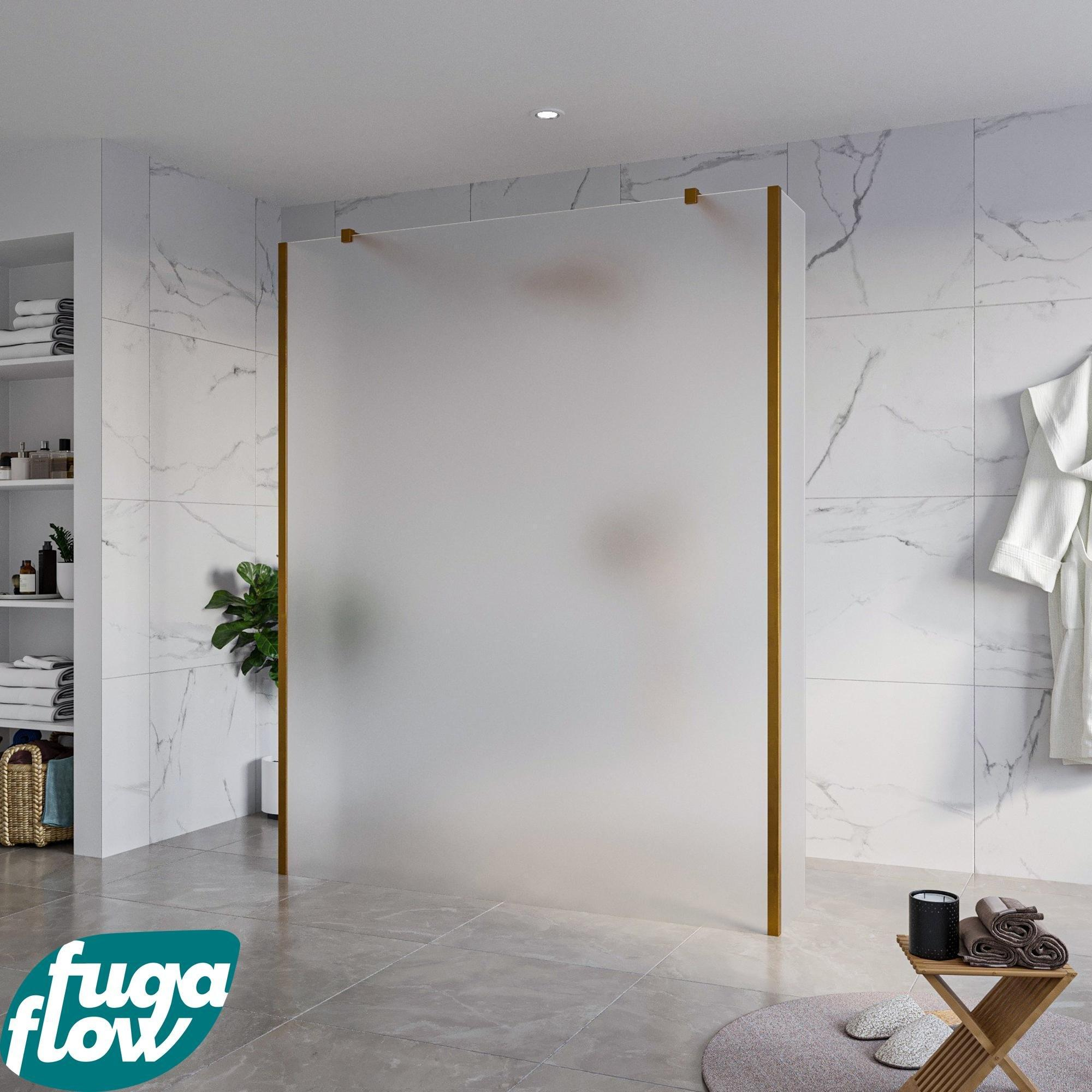 FugaFlow Eccelente Vetro Vrijstaande inloopdouche badkamer - 160x200cm - Glas mat - antikalk - 8mm veiligheidsglas - 2 zijwanden 40cm - met wandarmen en hoekprofielen - Koper geborsteld -