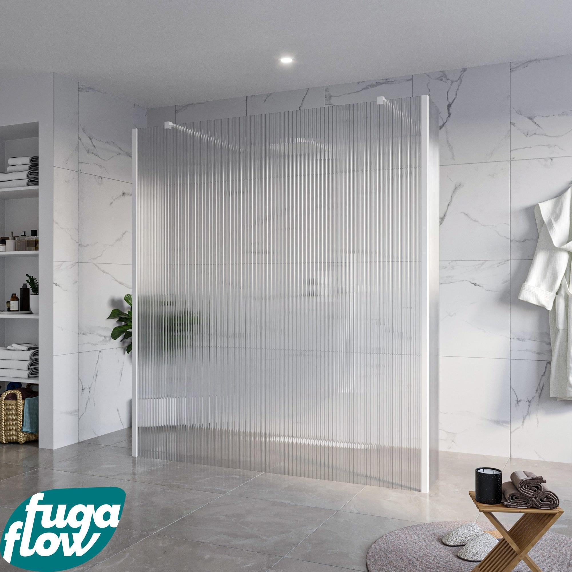 FugaFlow Eccelente Vetro Vrijstaande inloopdouche badkamer - 180x200cm - Helder geribbeld - antikalk - 8mm veiligheidsglas - 2 zijwanden 30cm - met wandarmen en hoekprofielen - Wit mat -