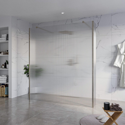 De FugaFlow Eccelente Vetro Vrijstaande Inloopdouche straalt een majestueuze schoonheid uit die de badkamer transformeert tot een luxe spa-ervaring. Het helder geribbelde glas creëert een prachtig visueel effect en zorgt voor een unieke uitstraling. De gunmetal afwerking voegt een vleugje elegantie toe en maakt deze inloopdouche een eyecatcher in elke badkamer.