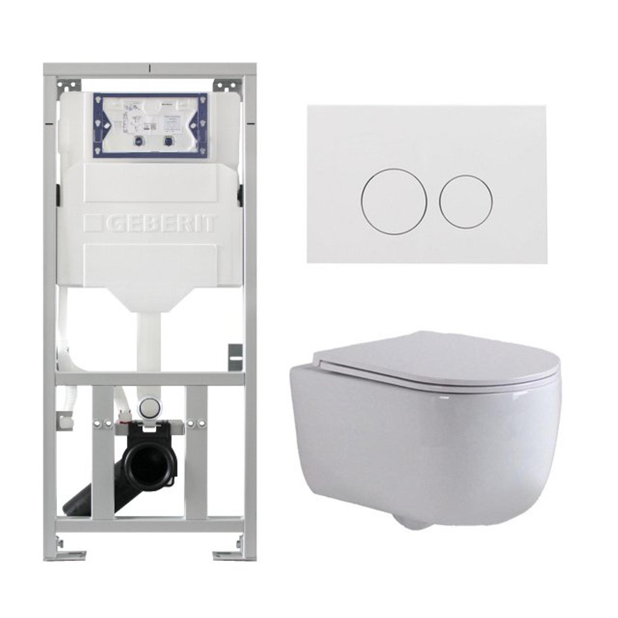 QeramiQ Dely Swirl Toiletset - 36.3x51.7cm - Geberit UP320 inbouwreservoir - met Burda frame - slim zitting - glans witte bedieningsplaat - ronde knoppen - wit glans