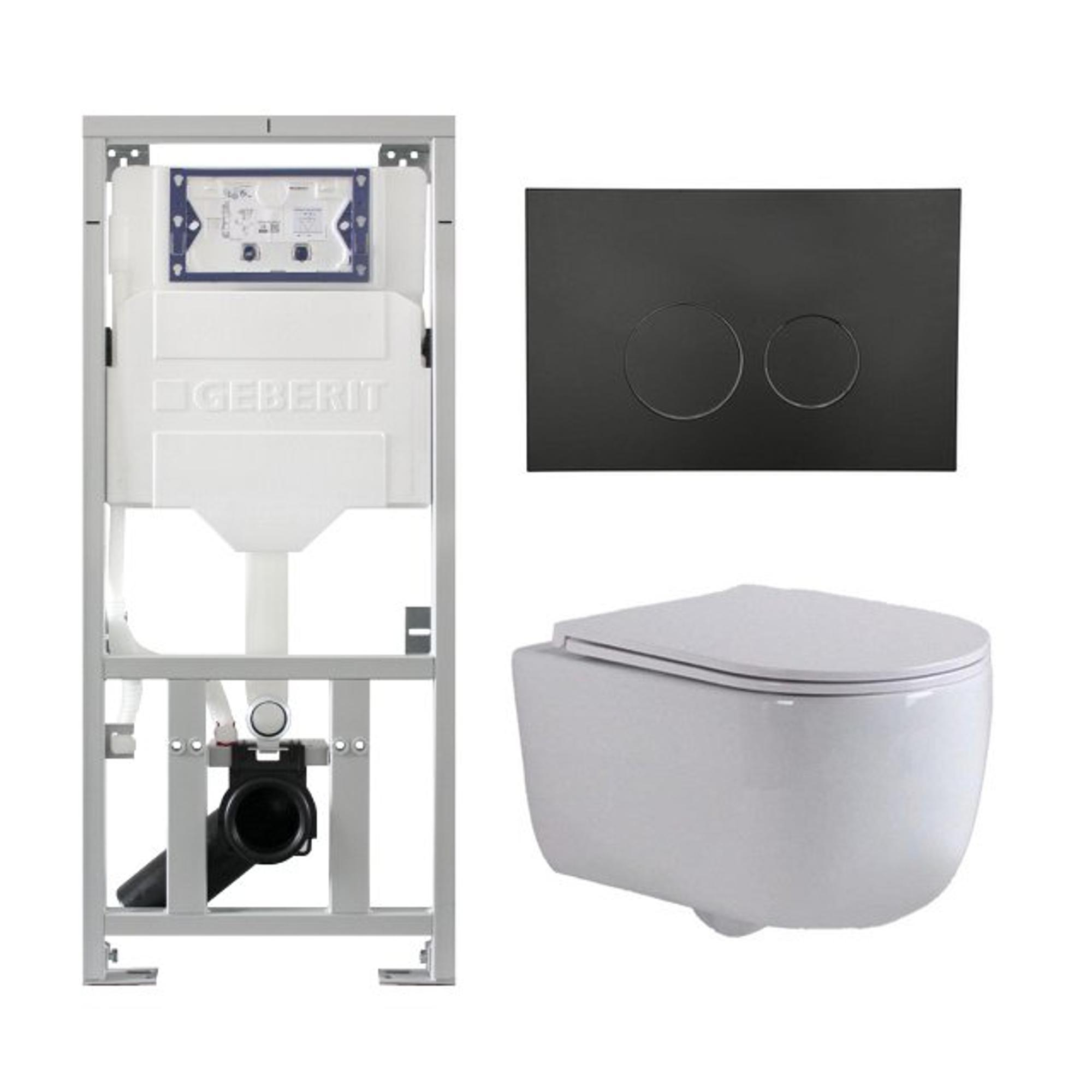 QeramiQ Dely Swirl Toiletset - 36.3x51.7cm - Geberit UP320 inbouwreservoir - met Burda frame - slim zitting - mat zwarte bedieningsplaat - ronde knoppen - wit mat