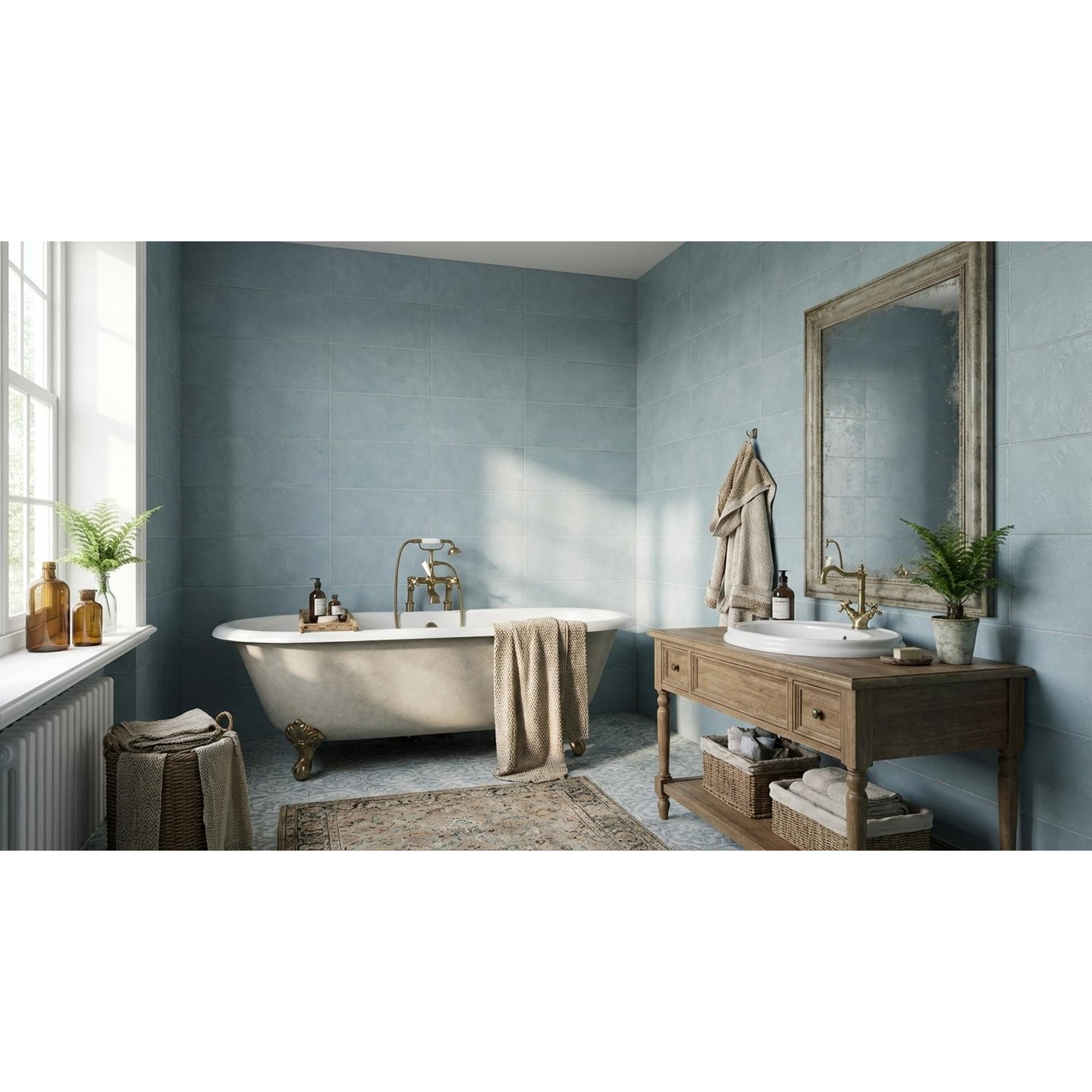 Deze wandtegel straalt een onmiskenbare stijl uit die moeiteloos elke badkamer transformeert tot een oase van rust en luxe. De diepe blauwe tinten van de Aqua mat afwerking voegen een gevoel van sereniteit toe aan de ruimte, terwijl het subtiele glanseffect een vleugje elegantie geeft. De strakke lijnen en perfecte afmetingen van 25x50cm zorgen voor een naadloze installatie die een harmonieus geheel vormt.