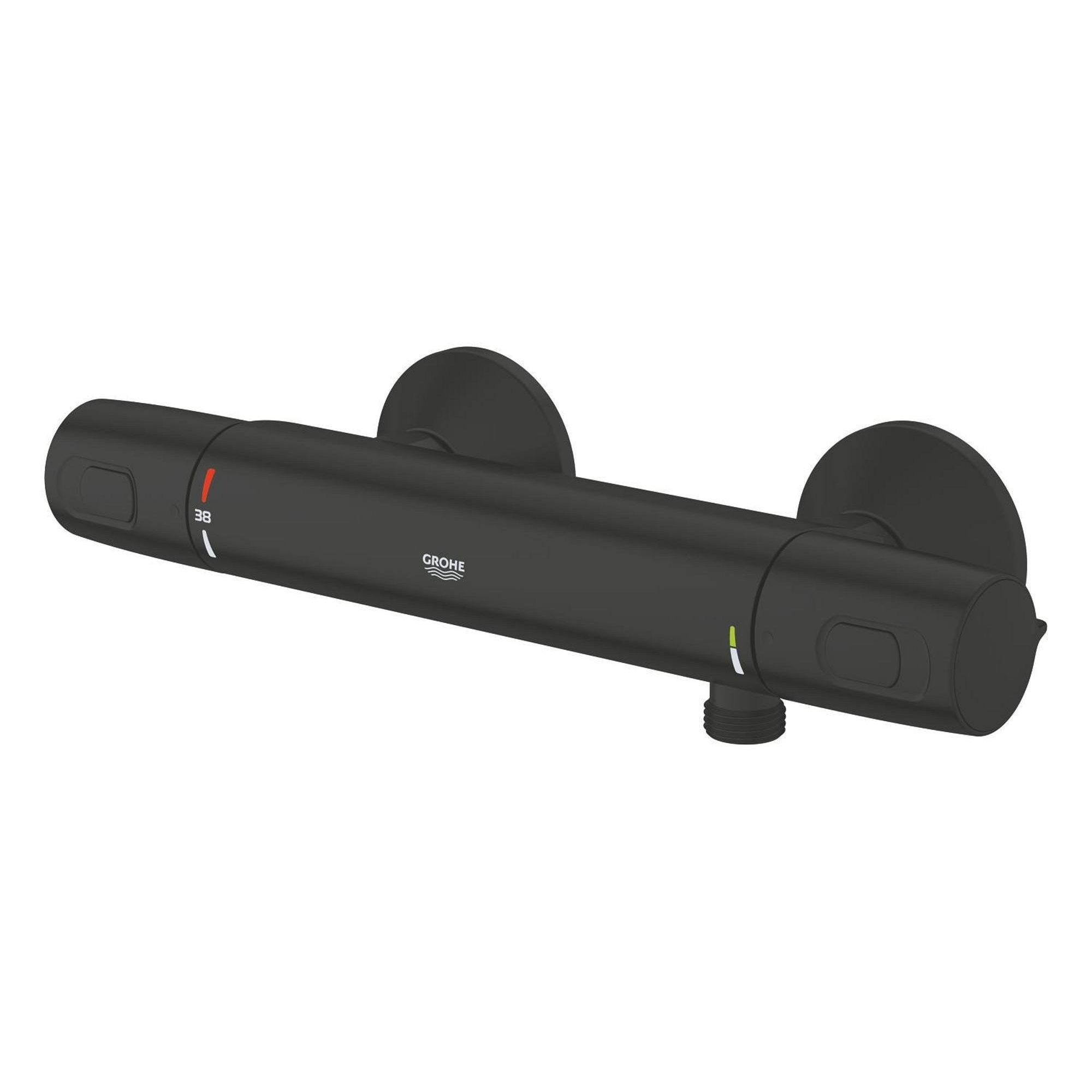 GROHE Precision Trend QuickFix Douchekraan - thermostatisch - zonder omstel - met koppelingen - HOH=15cm - matte black (zwart)