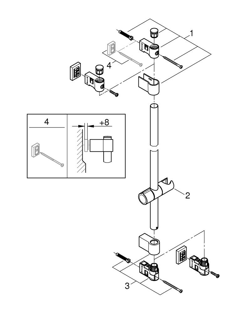 - Compatibel met bestaande boorgaten dankzij verstelbare bovenste steun