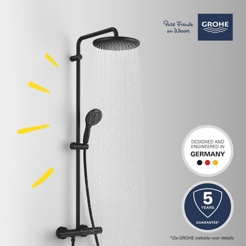 GROHE Vitalio Start 250 Regendoucheset - hoofddouche 25cm - ronde handdouche - 2 straalsoorten - met douchethermostaat - mat zwart