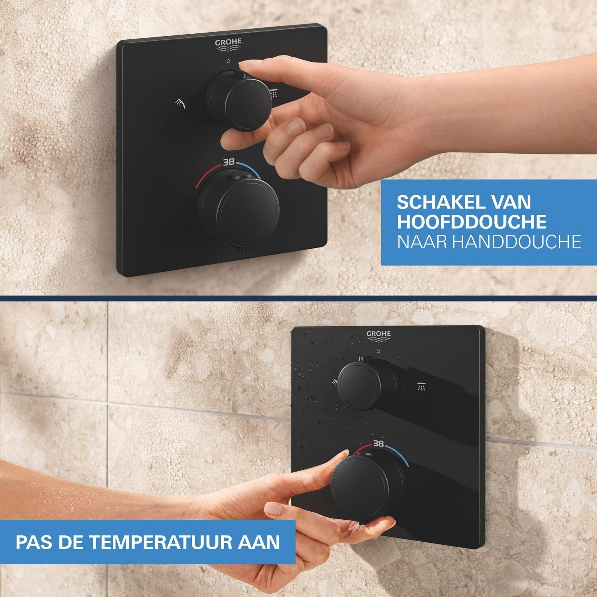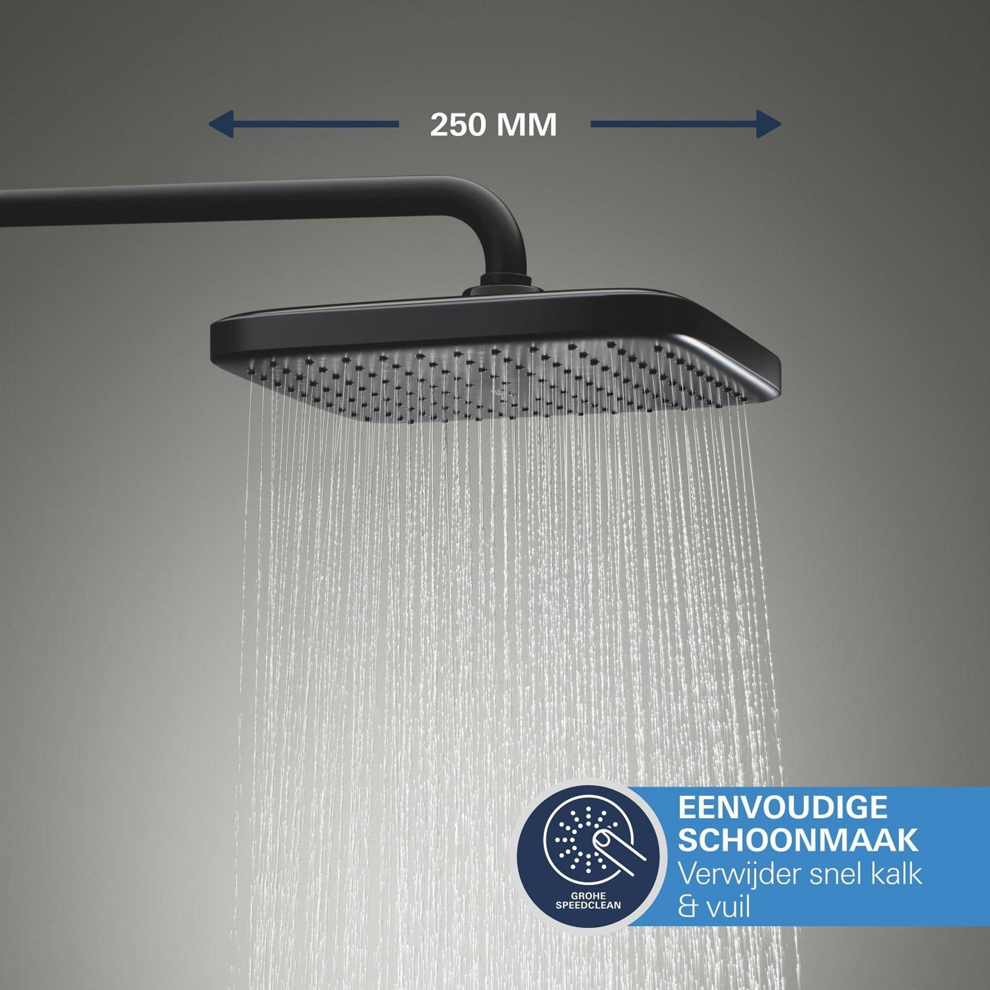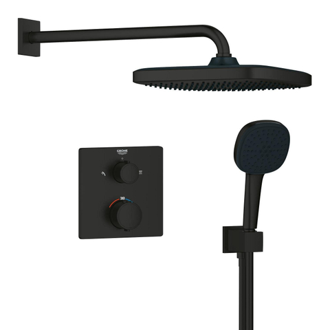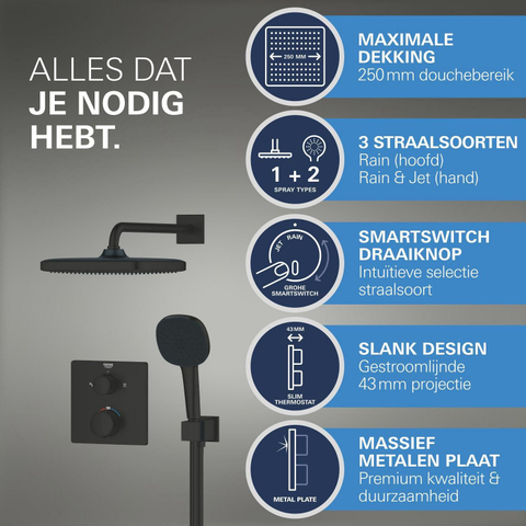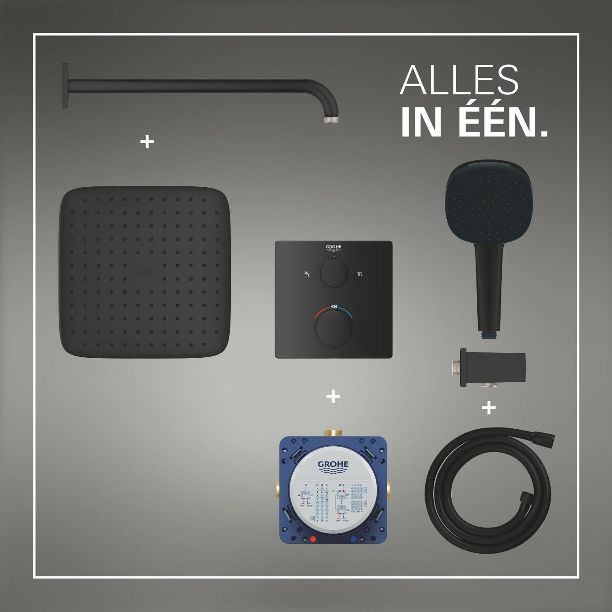 Grohe Precision showerset compleet m. handdouche ø11cm m. 2 straalsoorten en hoofddouche 25x25cmm. inbouw douchekraan therm. vierkant m. omstel mat zwart