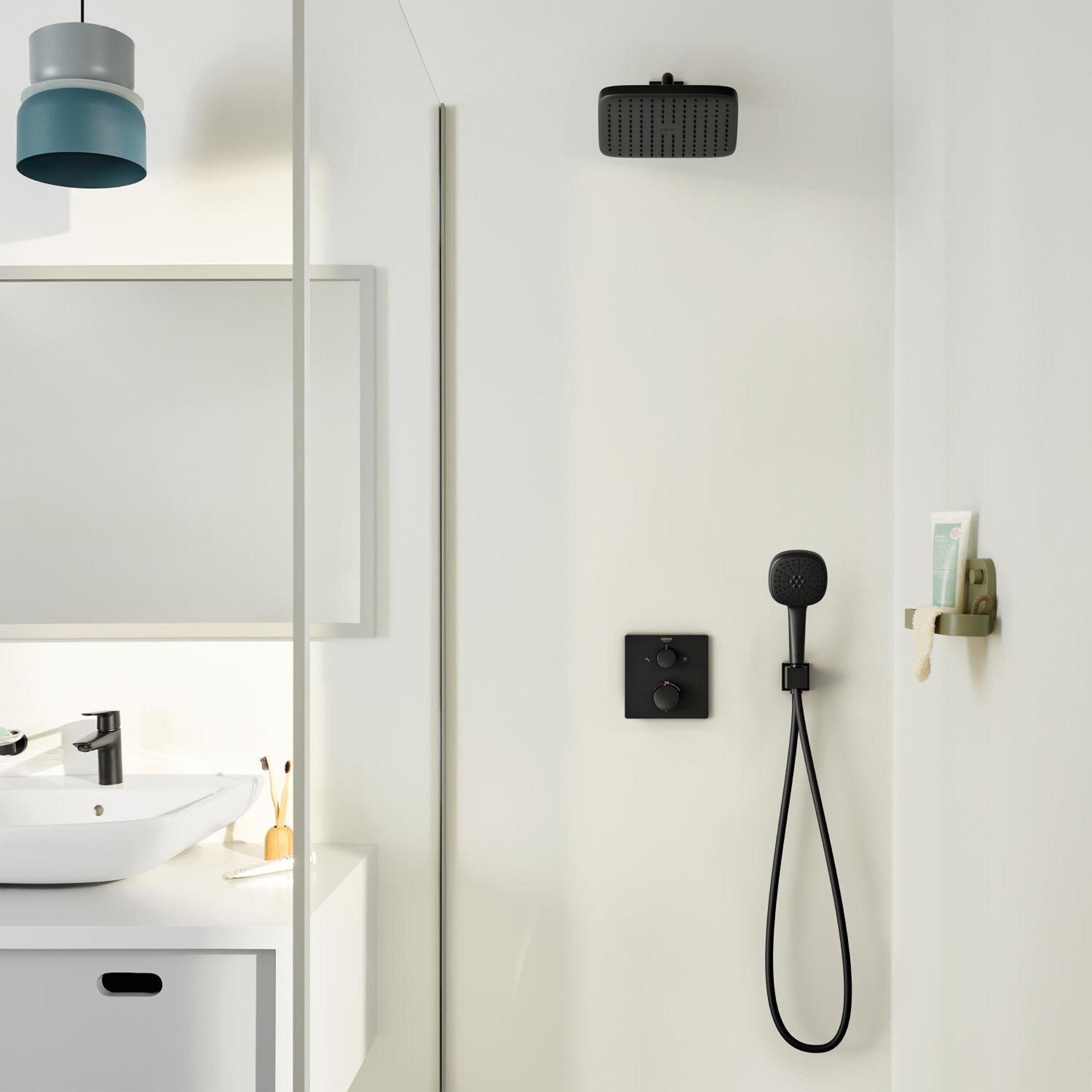 De Grohe Precision showerset straalt moderniteit uit met zijn strakke lijnen en matzwarte afwerking. Het minimalistische ontwerp past perfect bij eigentijdse badkamers en voegt een vleugje elegantie toe aan de ruimte. De combinatie van de handdouche, hoofddouche en inbouw douchekraan creëert een harmonieus geheel dat zowel functioneel als esthetisch aantrekkelijk is.