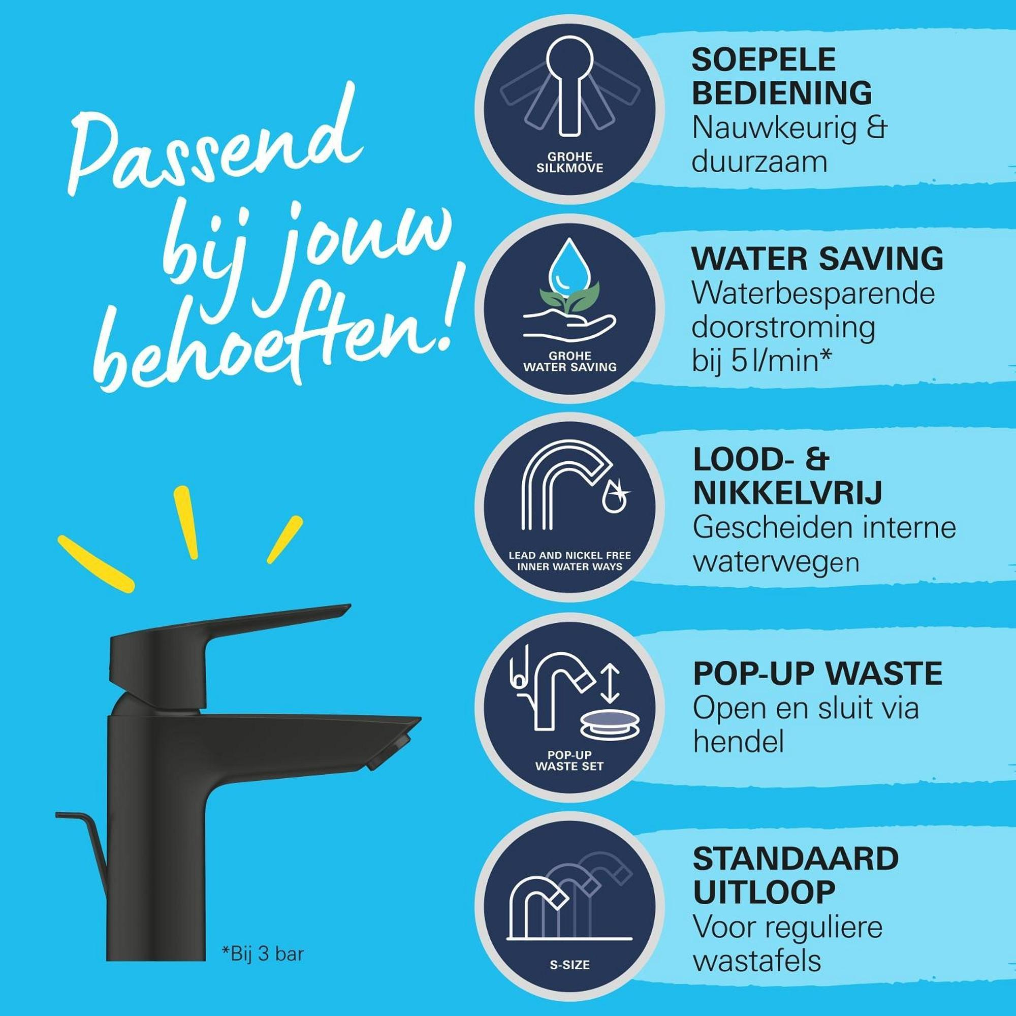 Grohe Start Wastafelmengkraan - opbouw - 10.9cm uitloop - S-size - mat zwart
