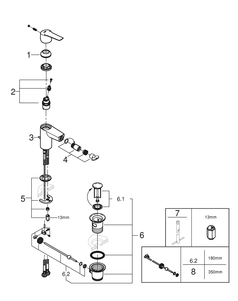 - Pop-up waste met hendel voor eenvoudig openen en sluiten van de afvoer