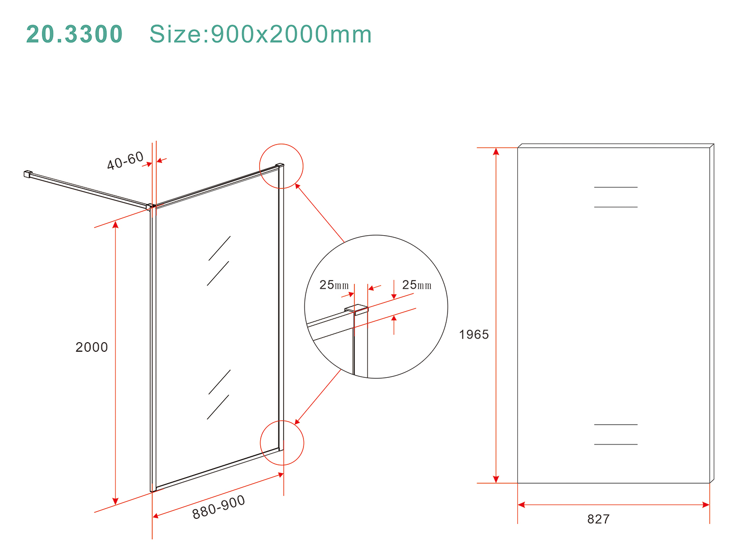 Wiesbaden Square inloopdouche 900 x 2000 x 8 mm nano helder glas/geborsteld messing