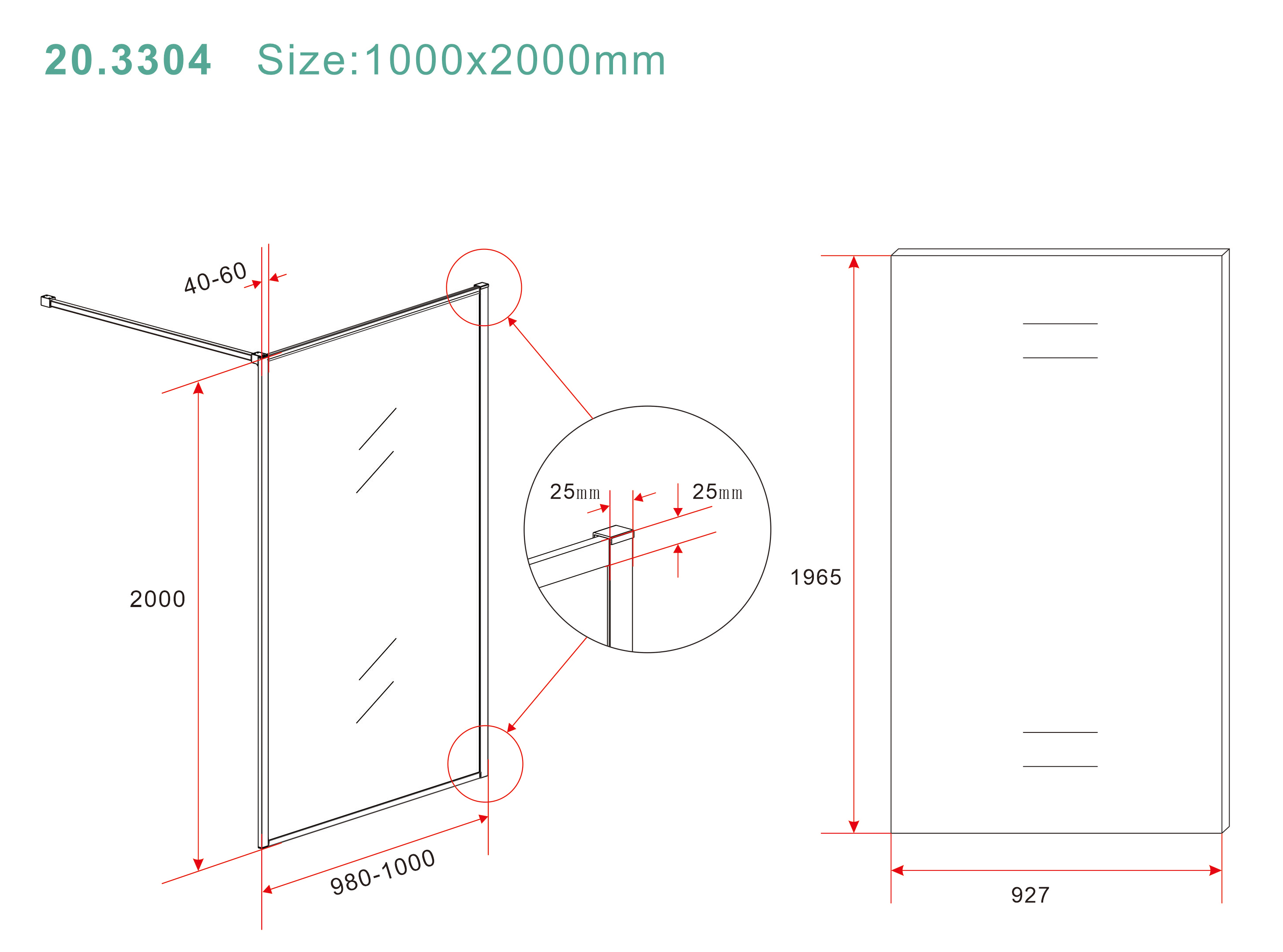 Wiesbaden Square inloopdouche 1000 x 2000 x 8 mm nano helder glas/geborsteld brons koper