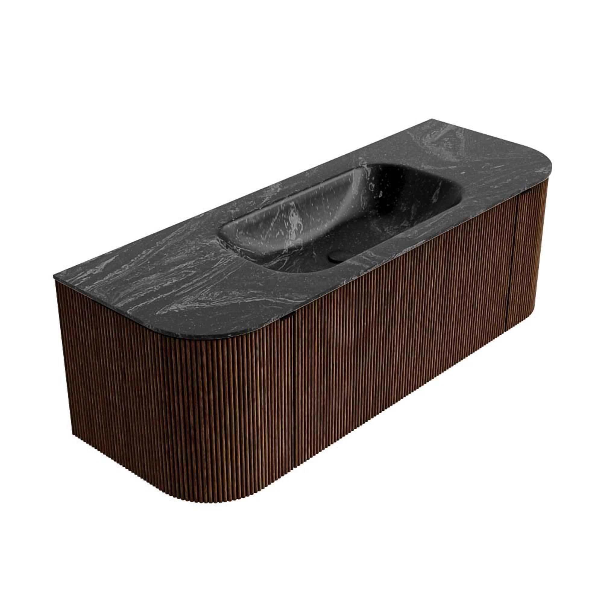 MONDIAZ KURVE-DLUX 130cm badmeubel met module 25 Len R kleur Walnut met 1 lade en 2 deuren. Wastafel BIG SMALL midden 1 kraangat kleur Lava.