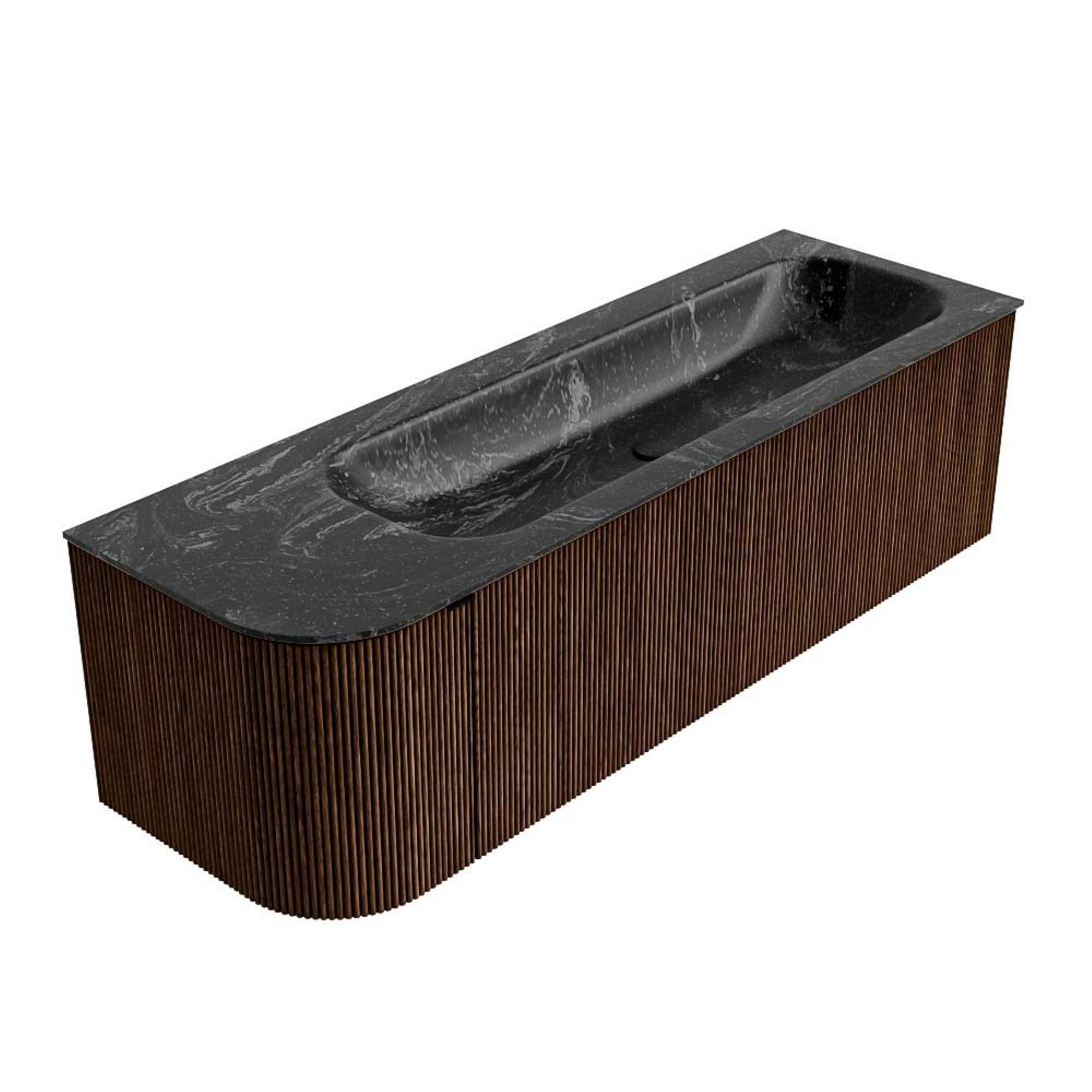 MONDIAZ KURVE-DLUX 145cm badmeubel met module 25 L kleur Walnut met 1 lade en 1 deur. Wastafel BIG LARGE rechts 2 kraangaten kleur Lava.