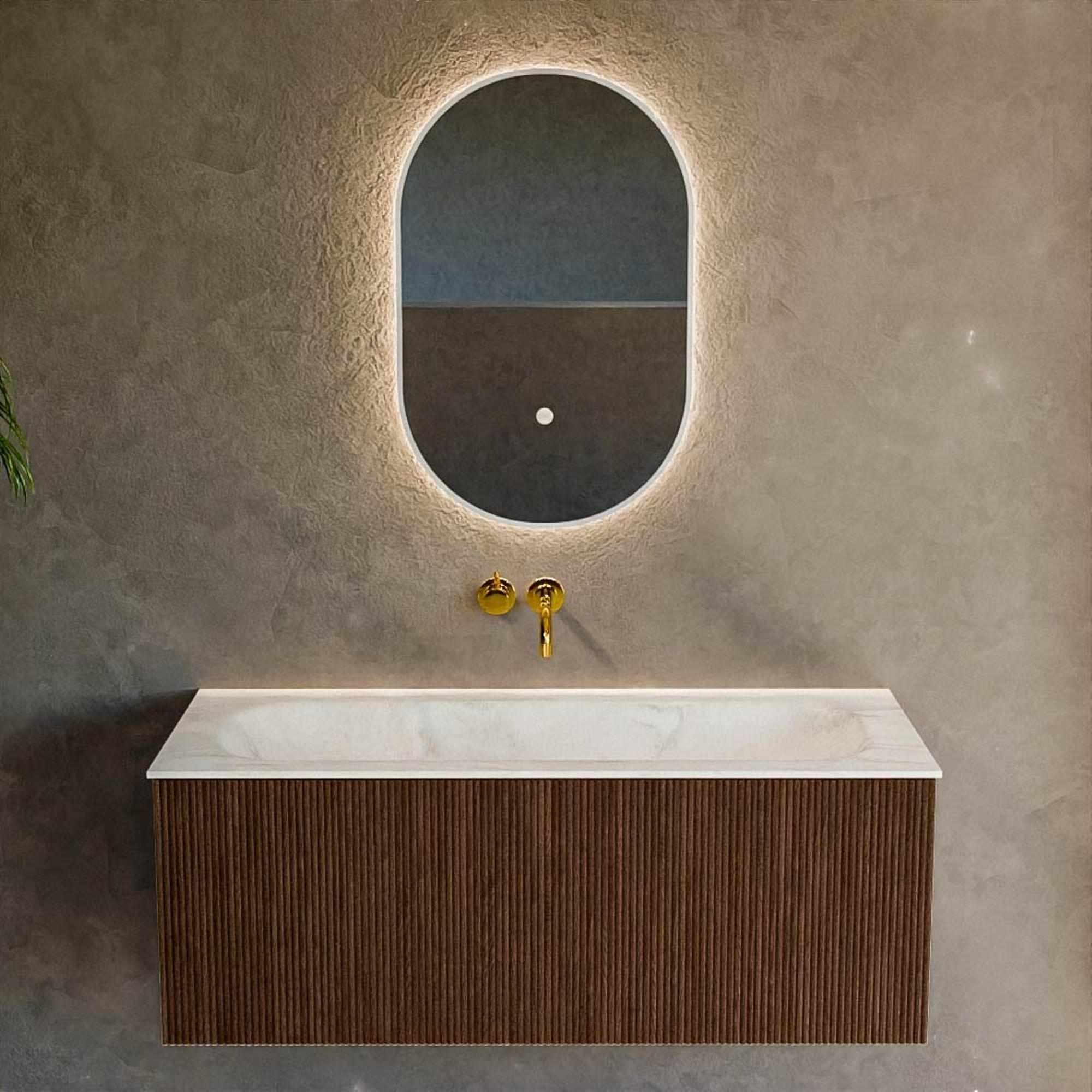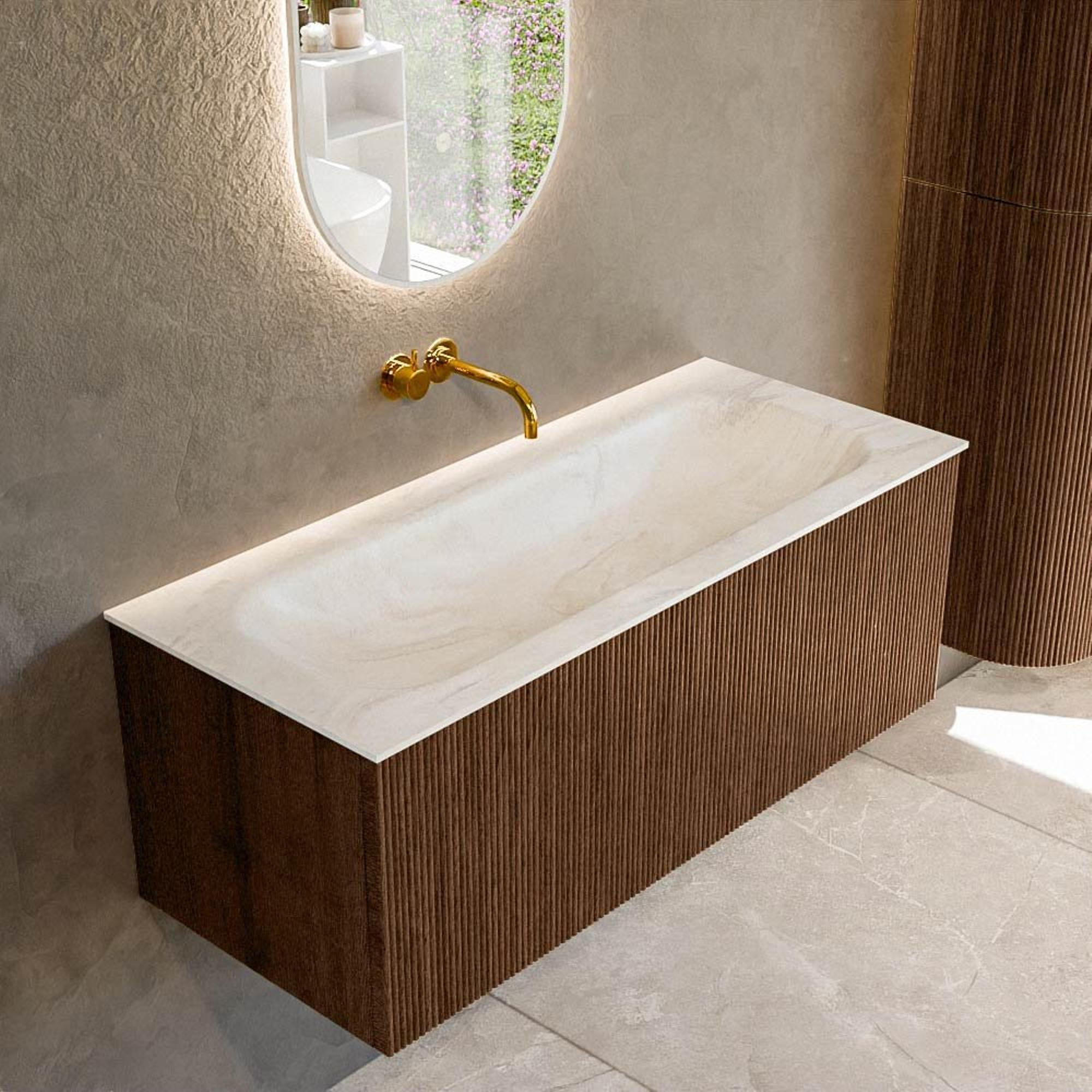 MONDIAZ KURVE-DLUX 110cm badmeubel kleur Walnut met 1 lade. Wastafel BIG MEDIUM midden zonder kraangat kleur Ostra.