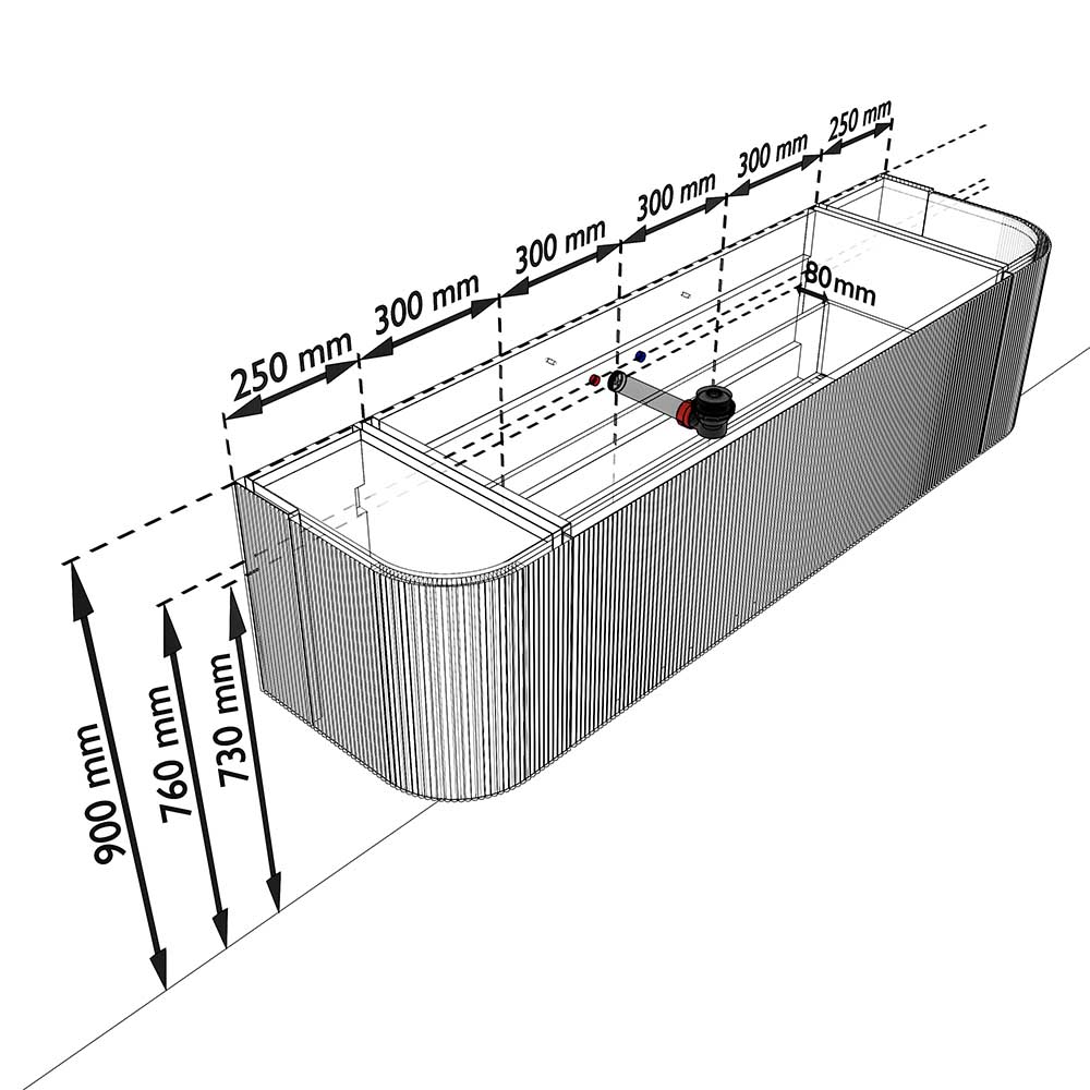 - Hoogte wastafel: 0,9cm