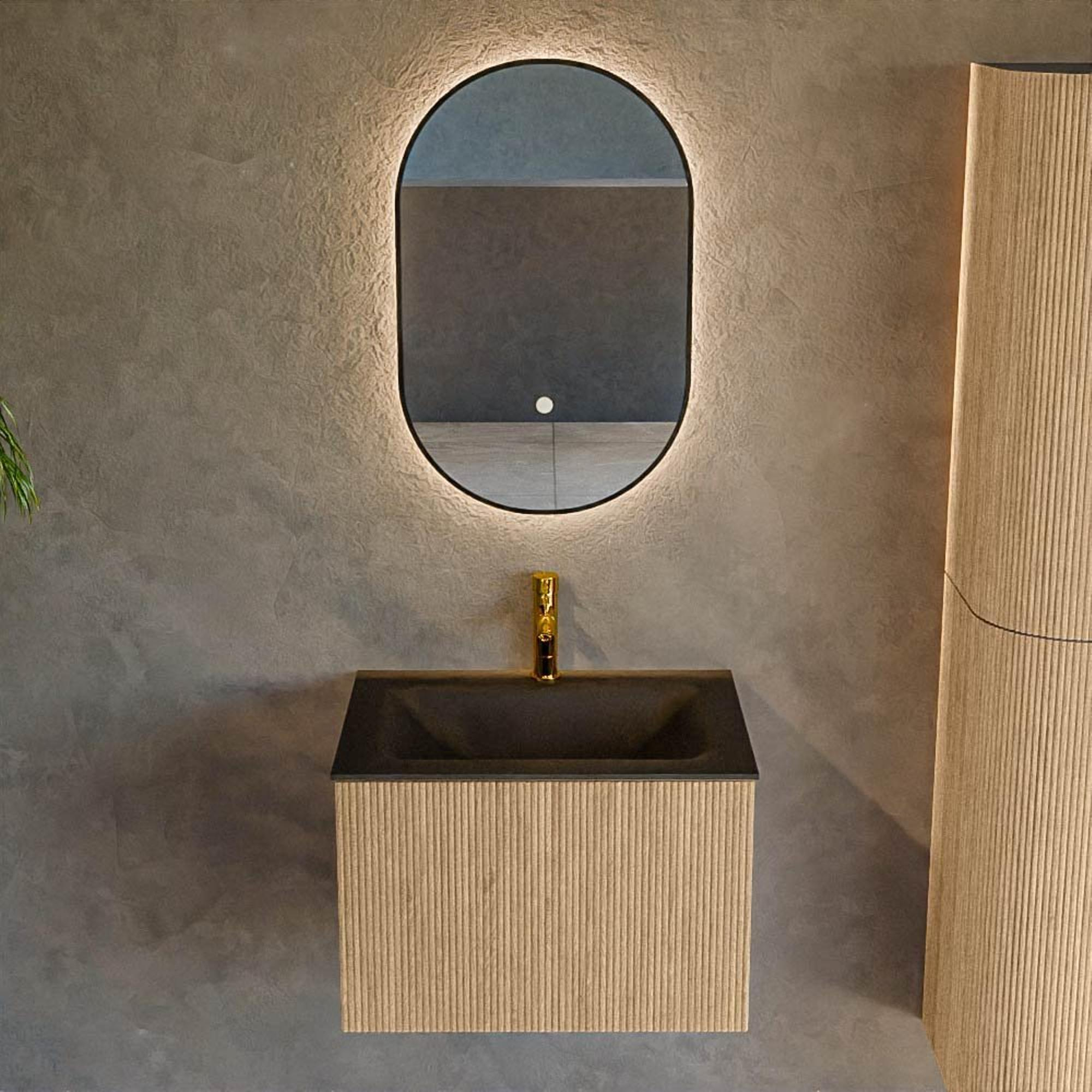 MONDIAZ KURVE 60cm badmeubel kleur Oak met 1 lade. Wastafel CLOUD midden 1 kraangat Urban.