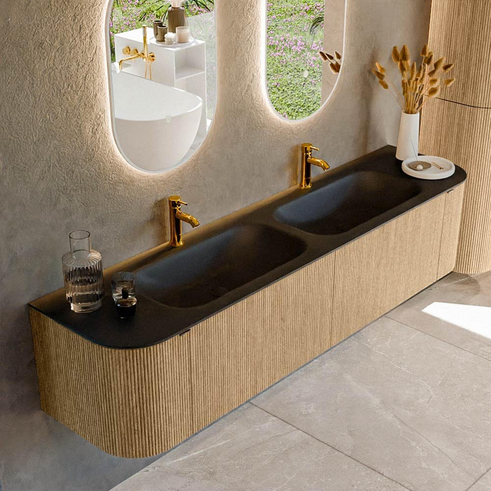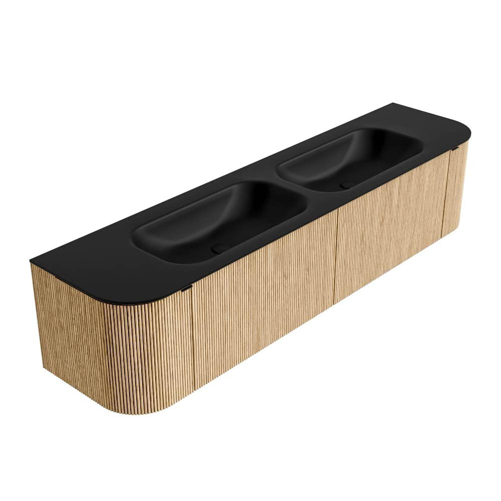 MONDIAZ KURVE 190cm badmeubel met module 25 Len R kleur Oak met 2 lades en 2 deuren. Wastafel BIG SMALL dubbel 2 kraangaten Urban.