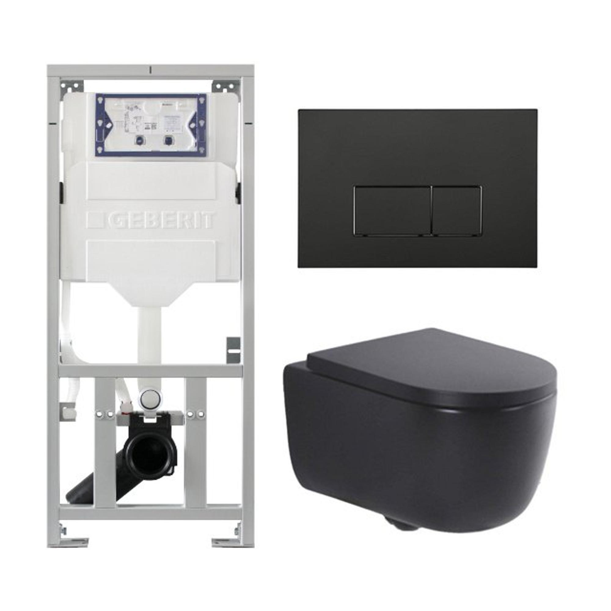 QeramiQ Dely Swirl Toiletset - 36.3x51.7cm - Geberit UP320 inbouwreservoir - met Burda frame - 35mm zitting - mat zwarte metalen bedieningsplaat - rechthoekige knoppen - mat zwart