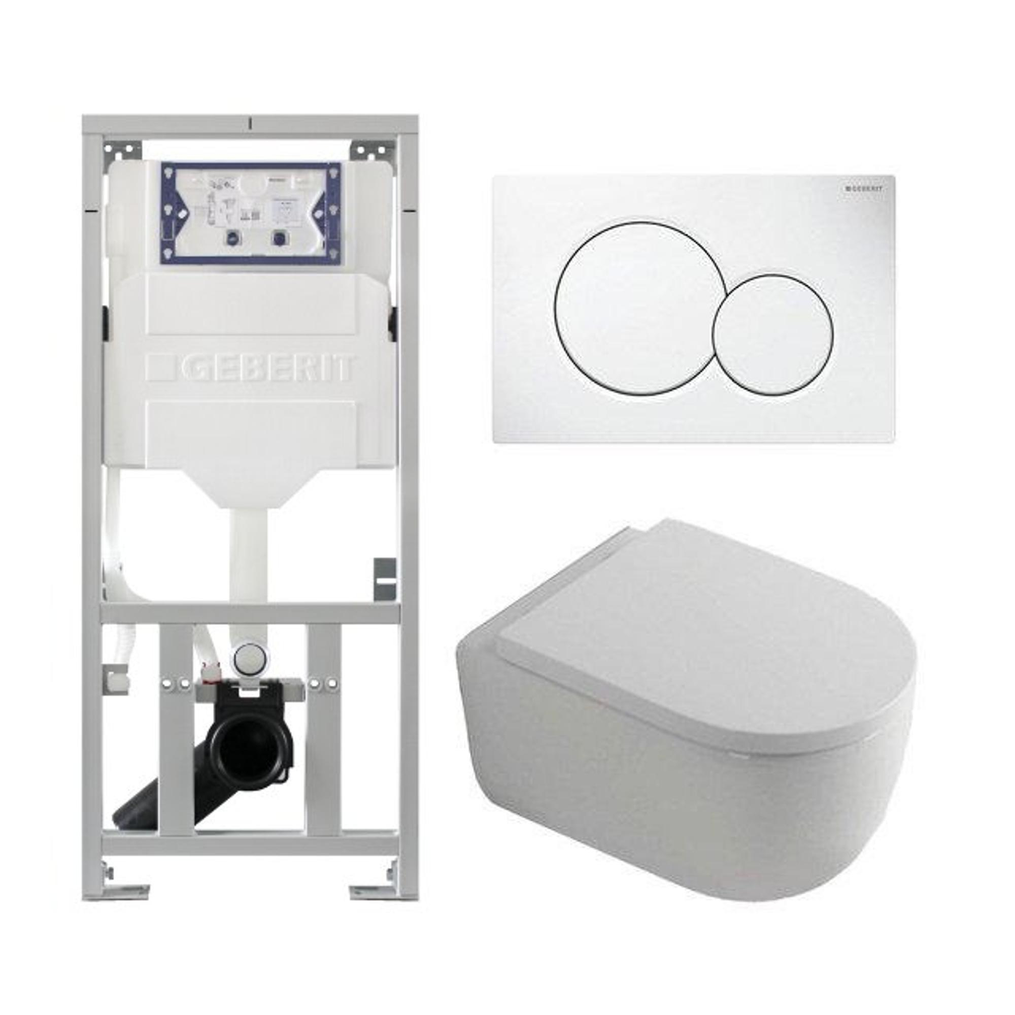 QeramiQ Dely Swirl Toiletset - 36.5x53cm - Geberit UP320 inbouwreservoir - met Burda frame - 35mm zitting - witte sigma bedieningsplaat - ronde knoppen - glans wit