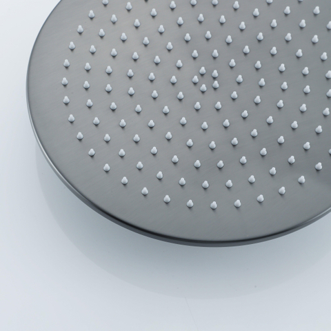 De elegante uitstraling van deze hoofddouche is direct zichtbaar door de hoogwaardige geborstelde gunmetal PVD-afwerking. Deze afwerking zorgt niet alleen voor een luxe look, maar is ook bestand tegen krassen en verkleuring, waardoor je badkamer jarenlang een verfijnde uitstraling behoudt. De ronde vorm met een diameter van 30 cm zorgt voor een brede, zachte waterstraal die je omhult en een gevoel van rust en comfort geeft. Zo geniet je keer op keer van een stijlvolle en serene douche-ervaring die jouw badkamer een exclusieve touch geeft.