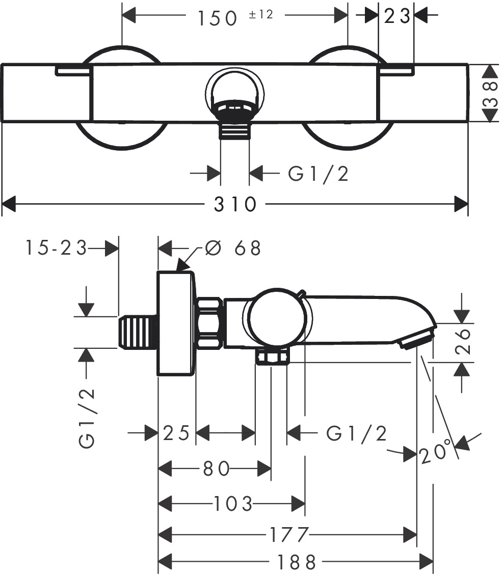 Hansgrohe Ecostat Fine Badmengkraan (opbouw)