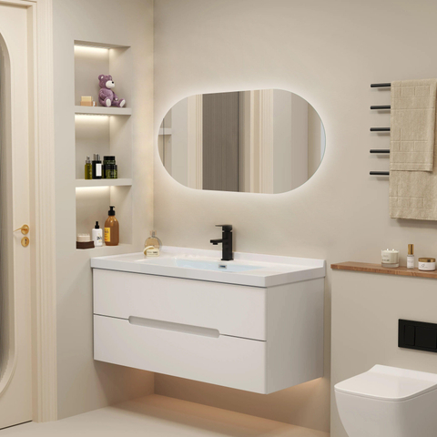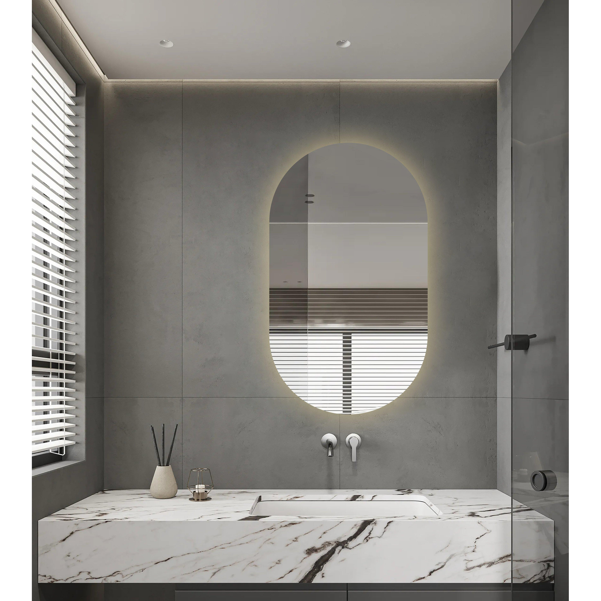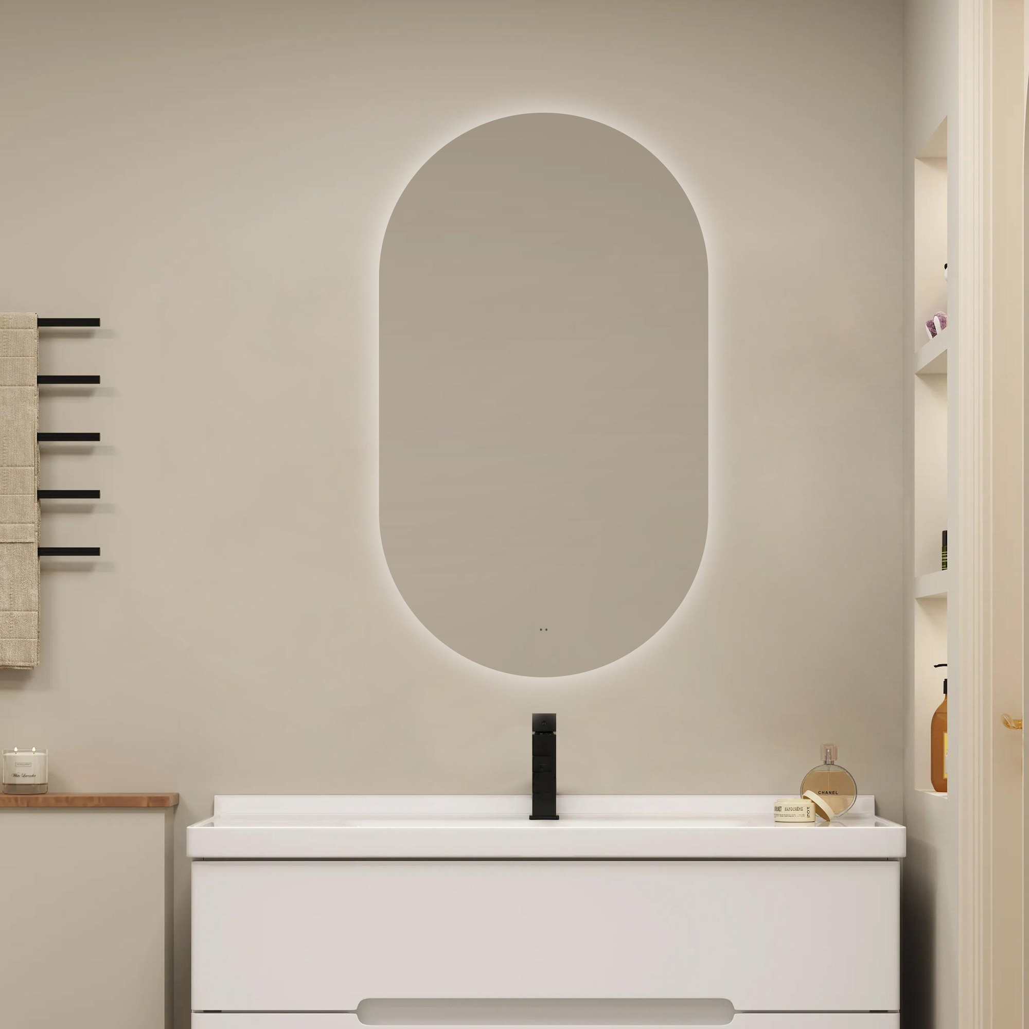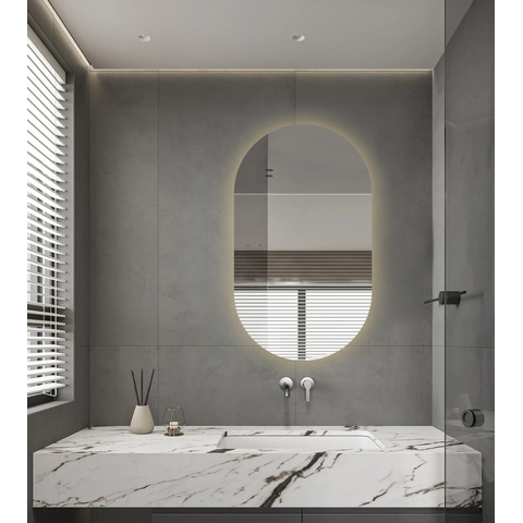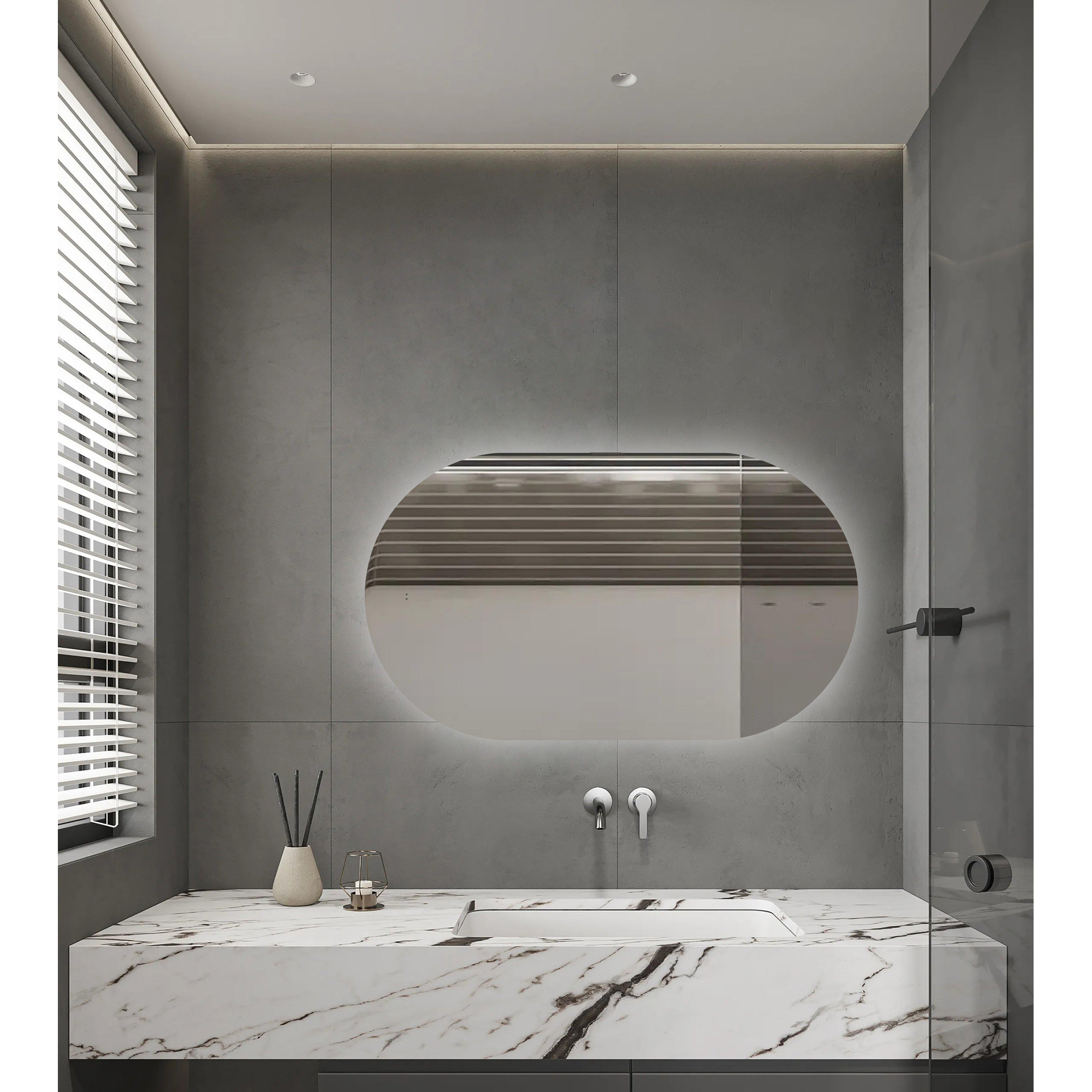 De ovale vorm en het slanke ontwerp geven deze spiegel een tijdloze elegantie die jouw badkamer direct een chique uitstraling geeft. De indirecte LED-verlichting is subtiel weggewerkt en zorgt voor een zachte, sfeervolle verlichting die de ruimte op een natuurlijke manier verlicht. Dit voorkomt harde schaduwen en zorgt voor een prettige ambiance, ideaal voor het aanbrengen van make-up of het scheren. Door de hoogwaardige afwerking en het strakke design past deze spiegel moeiteloos in diverse badkamerstijlen, van modern tot klassiek.