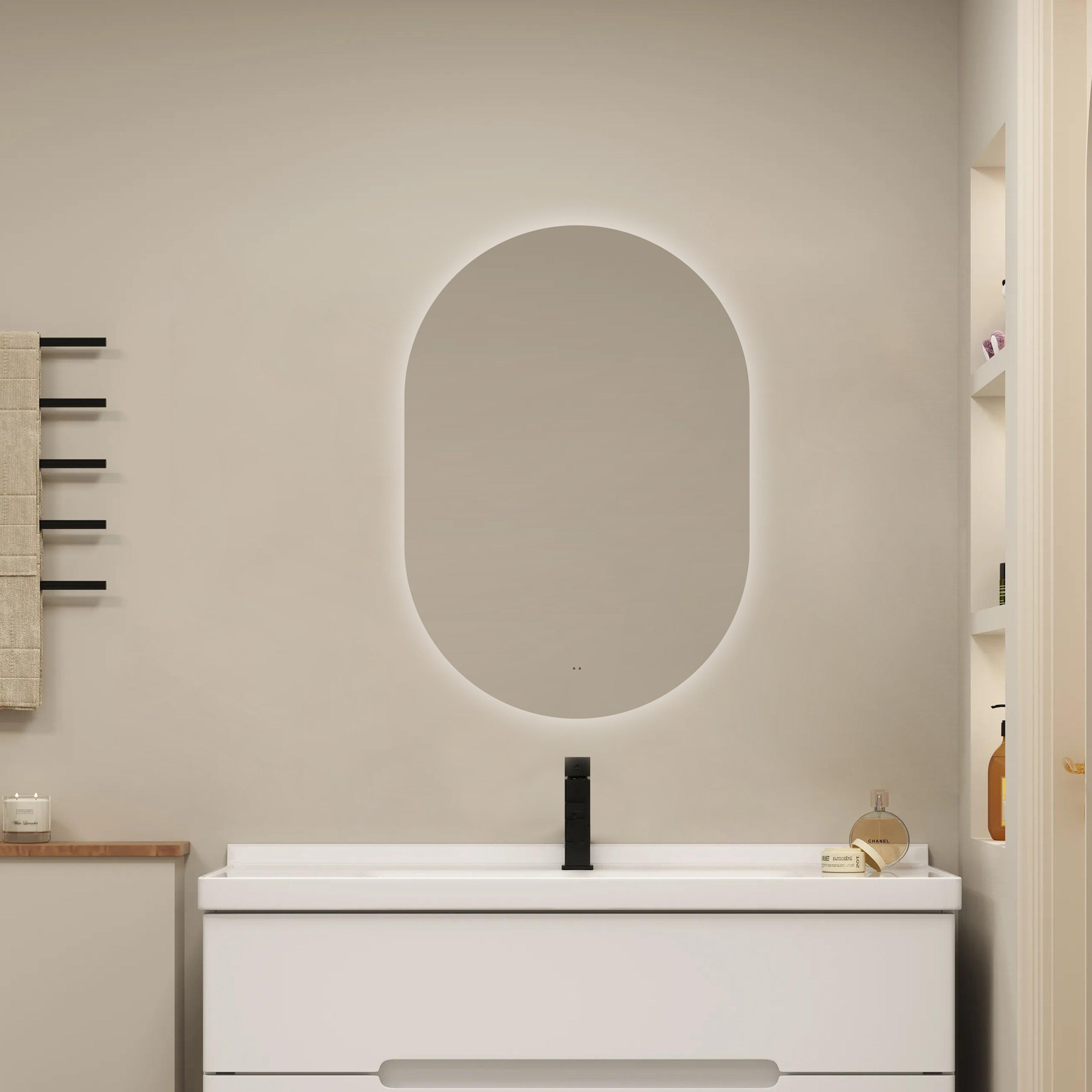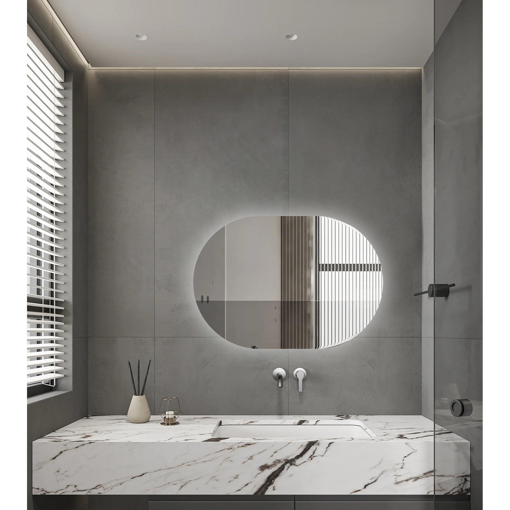 Met zijn slanke, ovale design voegt deze spiegel een tijdloze elegantie toe aan elke badkamerstijl. Of je nu een moderne, minimalistische inrichting hebt of juist kiest voor een klassieke uitstraling, de vorm en afwerking passen perfect bij diverse interieurstijlen. De mogelijkheid om de spiegel zowel horizontaal als verticaal te monteren geeft je bovendien de vrijheid om het design aan te passen aan jouw persoonlijke smaak en de beschikbare ruimte. De subtiele indirecte LED-verlichting accentueert de vorm en creëert een zachte ambiance, waardoor je badkamer niet alleen functioneel maar ook uitnodigend en stijlvol wordt.