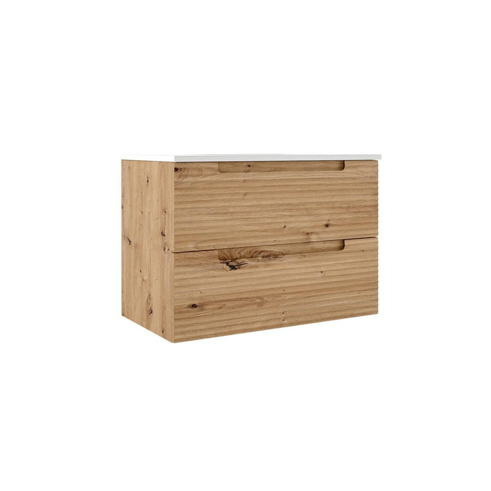 Saniclass Prime Balance Badkamermeubelset - 80x55x45cm - 1 ovale keramische wasbak wit - 1 kraangat - 2 lades - rechthoekige spiegel - rustiek eiken