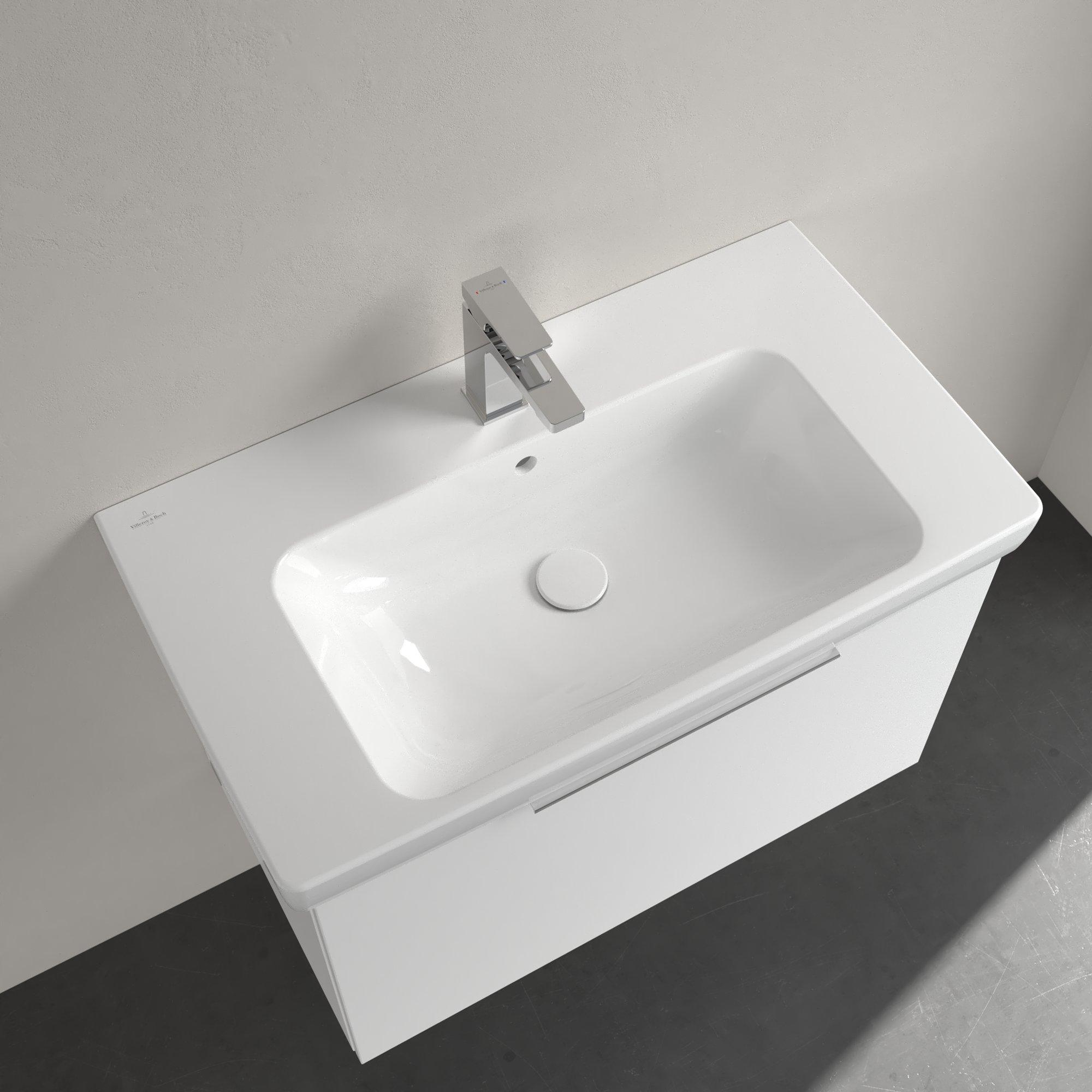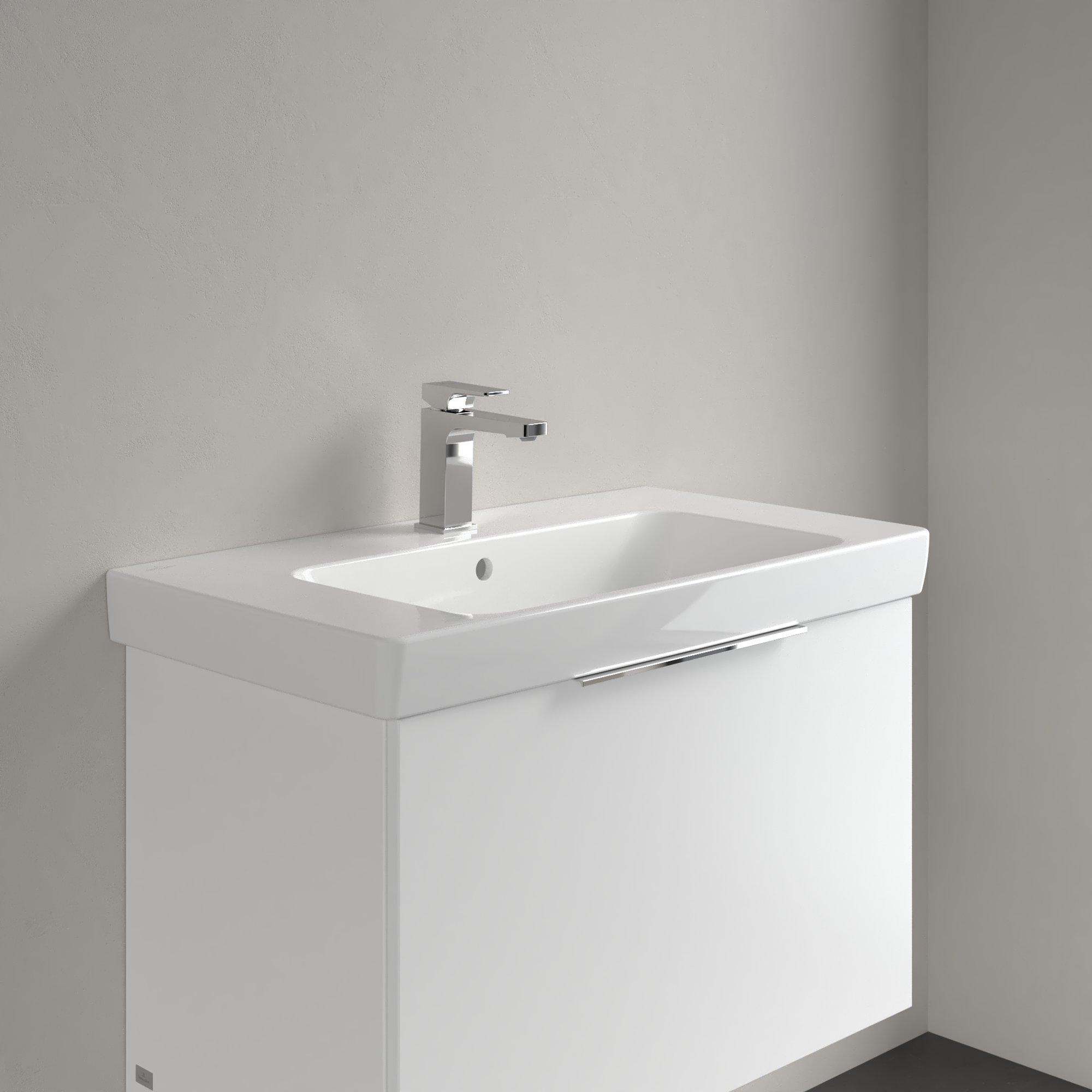 - Strakke rechthoekige wastafel van 80 cm breed met royale aflegruimte.