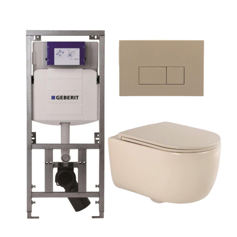 QeramiQ Dely Swirl Toiletset - 36.3x51.7cm - Geberit UP320 inbouwreservoir - met Burda frame - slimzitting - bedieningsplaat taupe - rechthoekige knoppen - beige