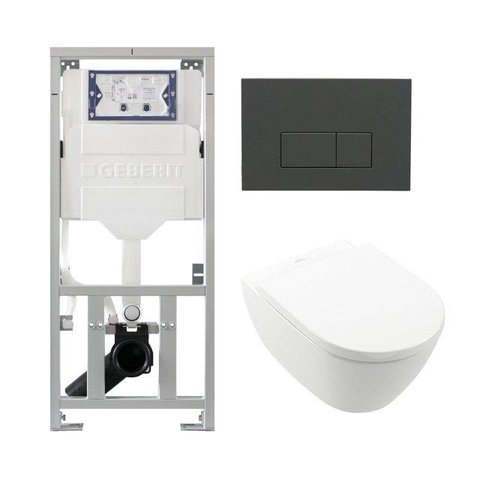 Villeroy Boch Subway 2.0 DirectFlush Toiletset - geberit reservoir - bedieningsplaat rechthoekige knoppen antracit mat - softclose - wit