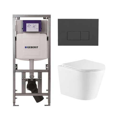 QeramiQ Dely Toiletset - 36.3x51.7cm - diepspoel - rimless - Geberit UP320 inbouwreservoir - met Burda frame - softclose toiletzitting - bedieningsplaat antraciet mat - rechthoekige knoppen - wit mat