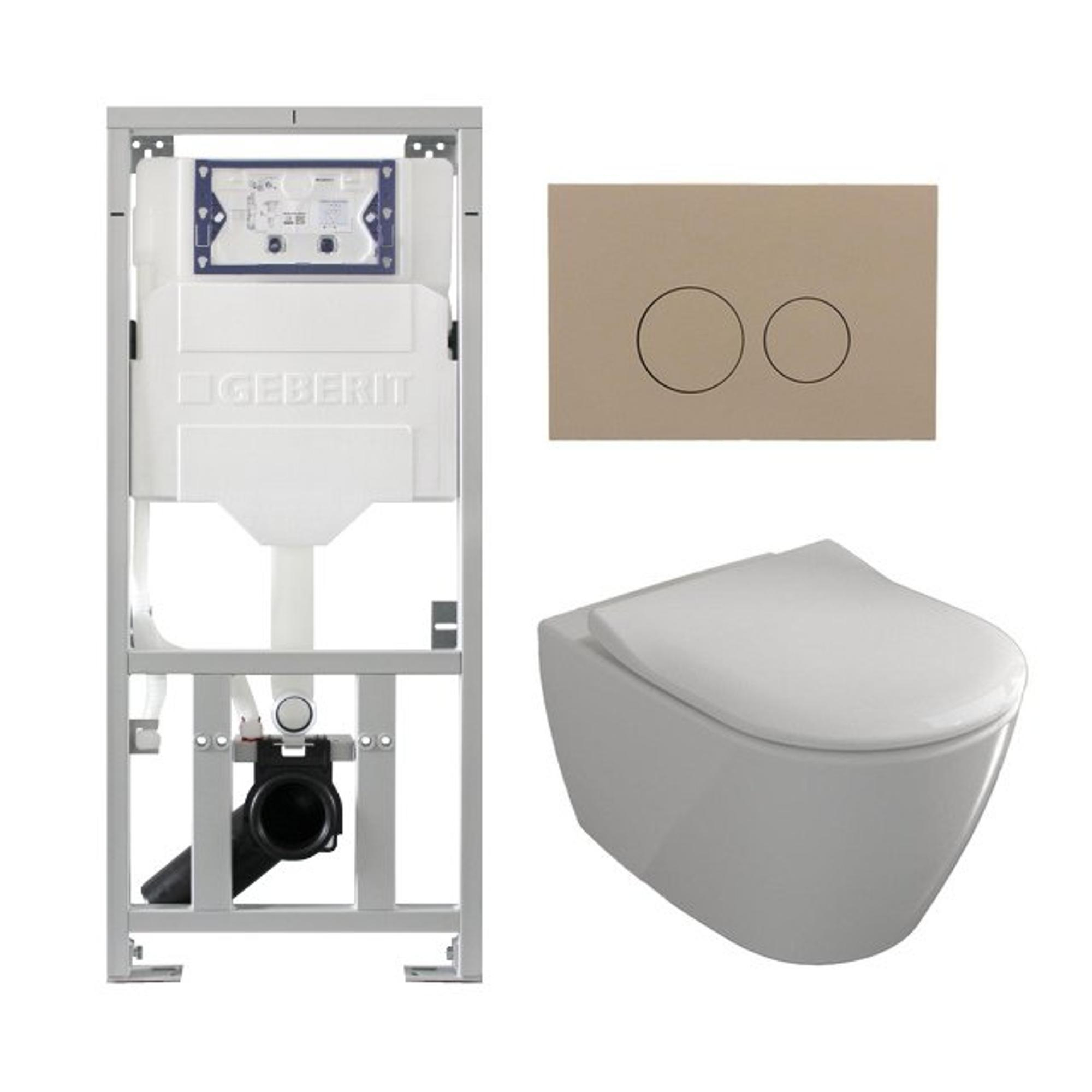 Villeroy & Boch Subway 2.0 Toiletset - inbouwreservoir - diepspoel wandcloset - directflush - slimseat - bedieningsplaat taupe - ronde knoppen - wit