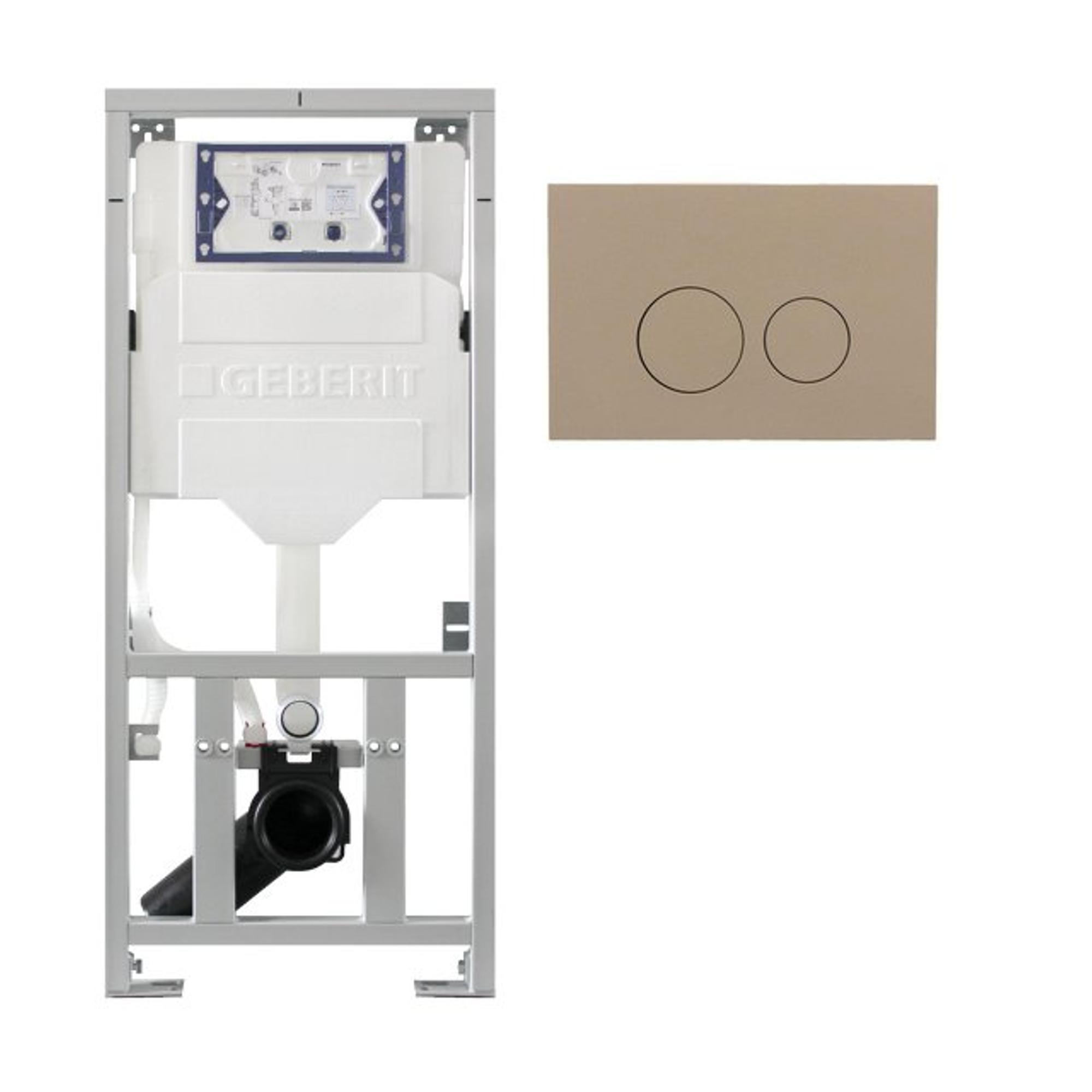 Geberit Inbouwreservoir - UP320 - QeramiQ push taupe bedieningsplaat - dualflush - ronde knoppen - kunststof taupe mat