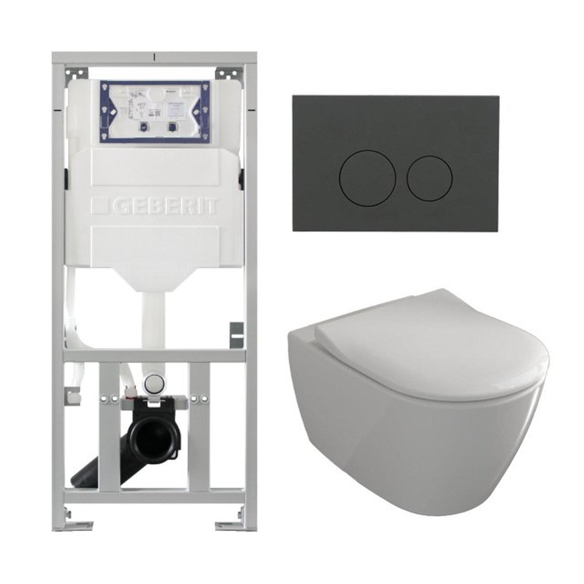 Villeroy & Boch Subway 2.0 Toiletset - inbouwreservoir - diepspoel wandcloset - directflush - slimseat - mat antraciet bedieningsplaat - ronde knoppen - wit
