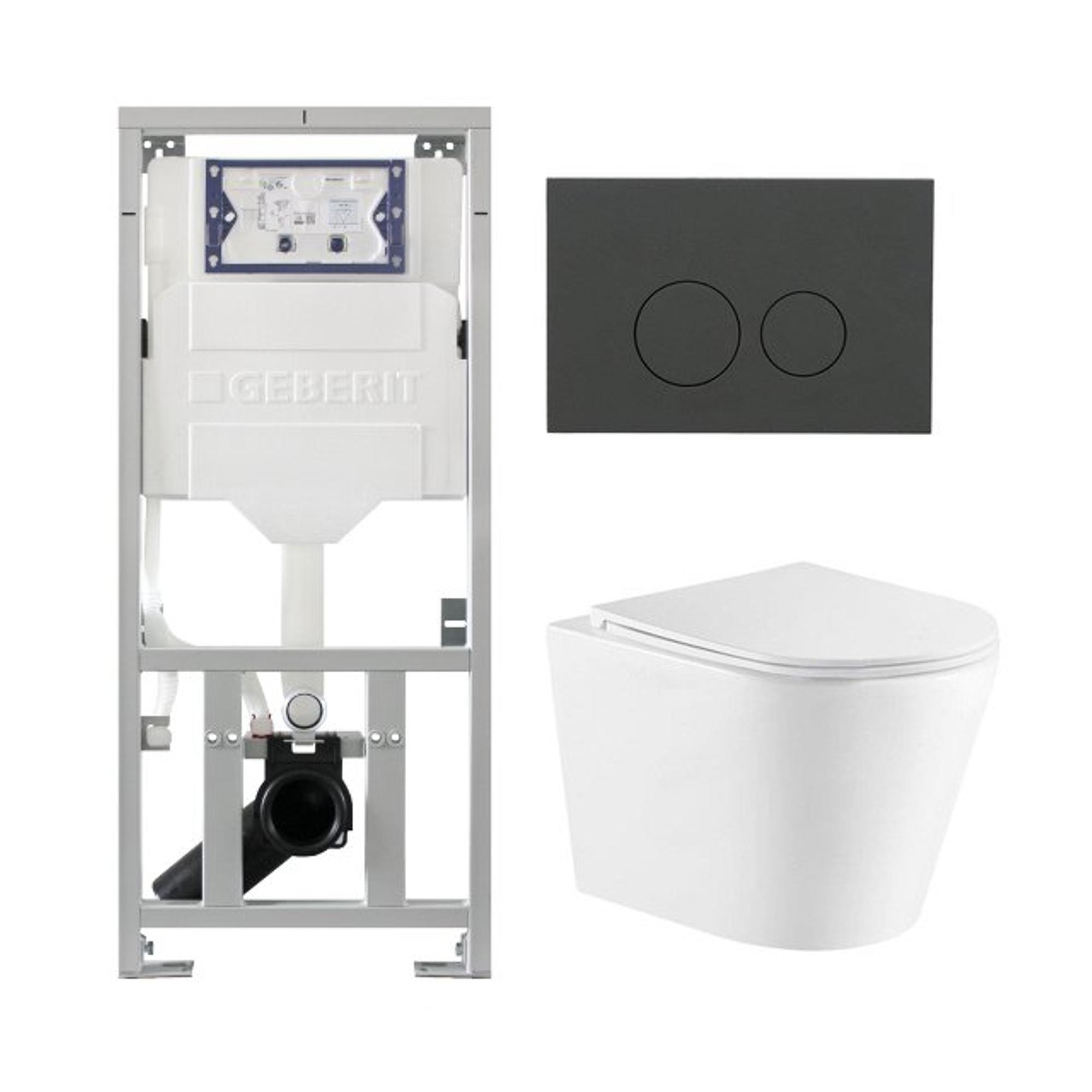 QeramiQ Dely Toiletset - 36.3x51.7cm - diepspoel - rimless - Geberit UP320 inbouwreservoir - met Burda frame - softclose toiletzitting - bedieningsplaat mat antraciet - ronde knoppen - wit mat