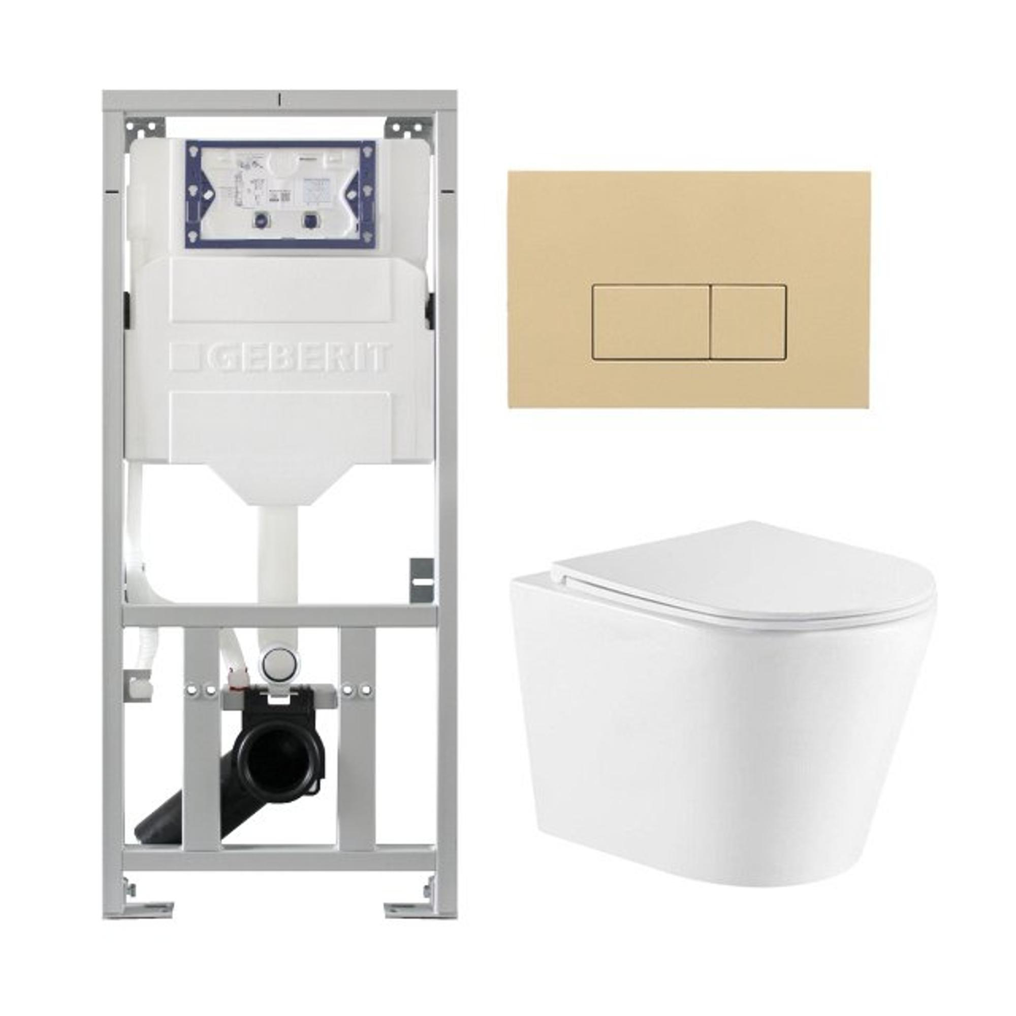 QeramiQ Dely Toiletset - 36.3x51.7cm - diepspoel - rimless - Geberit UP320 inbouwreservoir - softclose toiletzitting - beige bedieningsplaat - rechtehoekige knoppen - wit glans