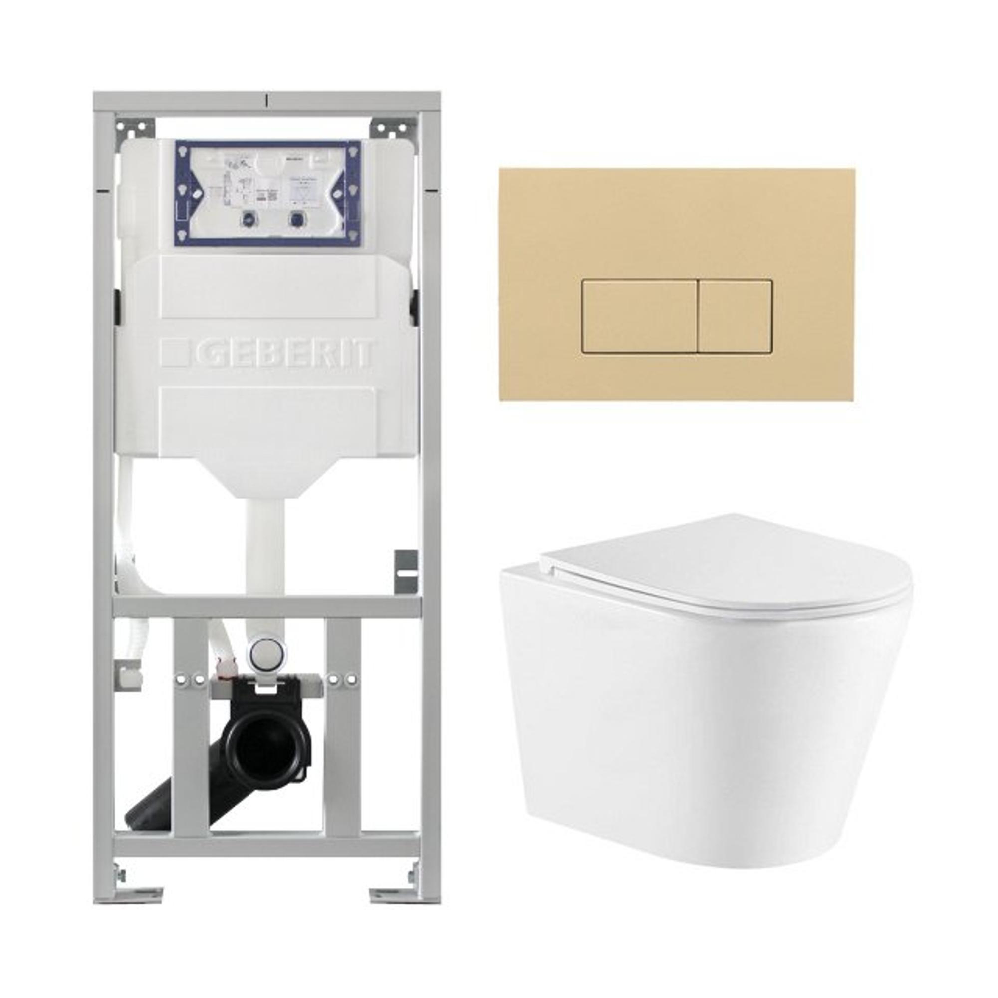 QeramiQ Dely Toiletset - 36.3x51.7cm - diepspoel - rimless - Geberit UP320 inbouwreservoir - met Burda frame - softclose toiletzitting - bedieningsplaat beige - rechthoekige knoppen - wit mat