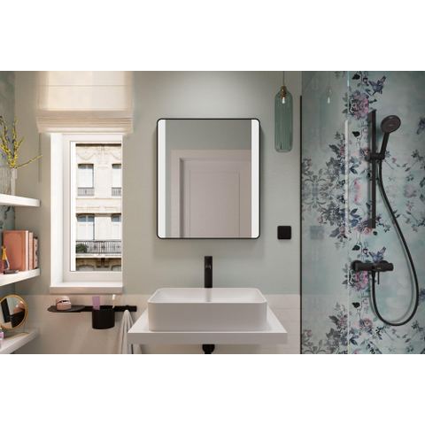 Het strakke, rechthoekige ontwerp en de zwarte mat lijst geven deze Xarita Lite Q badkamerspiegel een eigentijdse uitstraling die goed past bij moderne badkamermeubels, zwarte kranen en industriële douchesets. Met een afmeting van 60x70 cm biedt de spiegel een prettig, ruim kijkoppervlak zonder de ruimte te overheersen, ideaal voor compacte en middelgrote badkamers. De combinatie van helder spiegelglas en een subtiel vormgegeven lijst zorgt voor een rustige, symmetrische look boven je wastafel of dubbele wastafel. De geïntegreerde led verlichting benadrukt de lijnen van de spiegel en voegt een luxueus accent toe aan je badkamerinrichting en sanitair.
