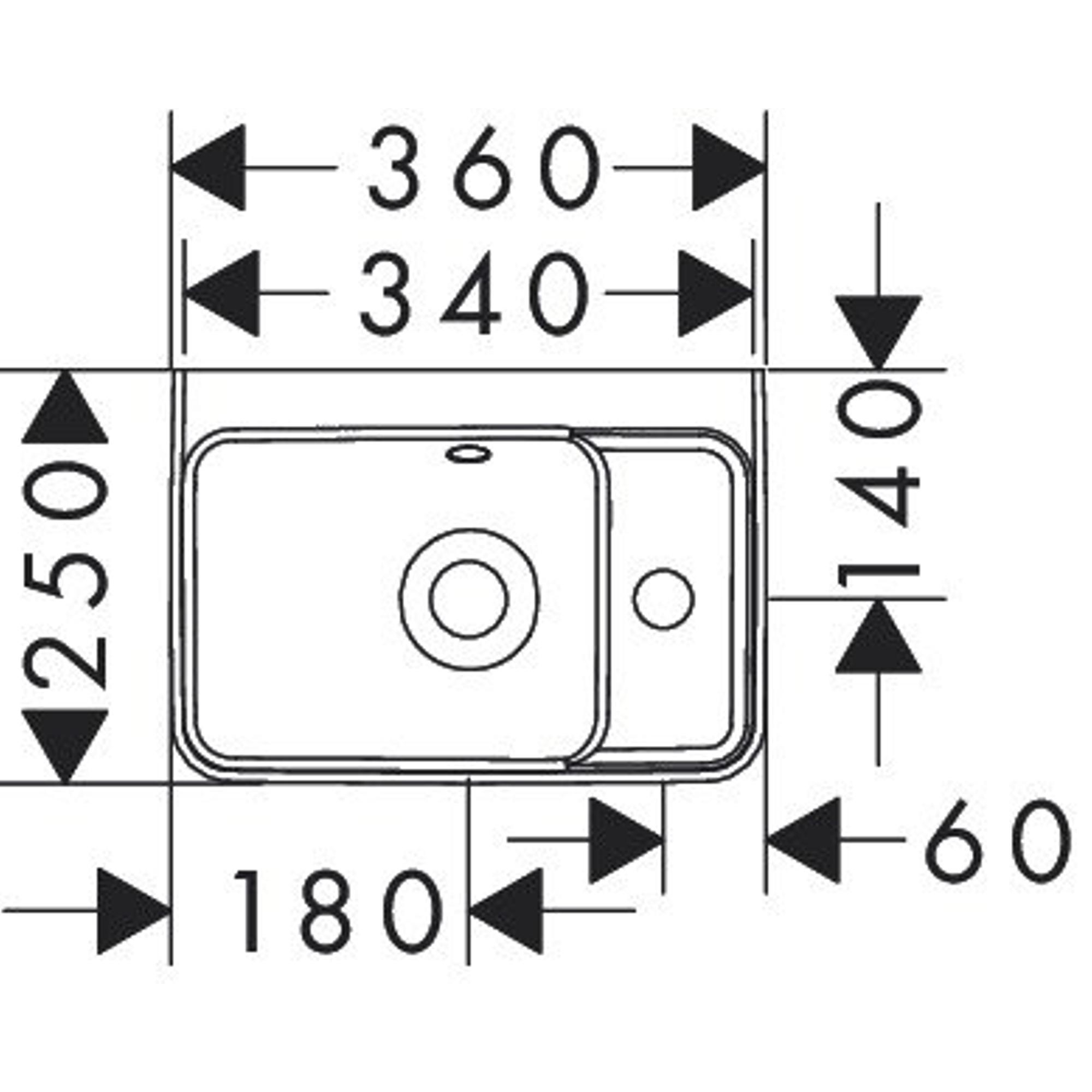 - Voorzien van 1 kraangat rechts, geschikt voor een compacte fonteinkraan.