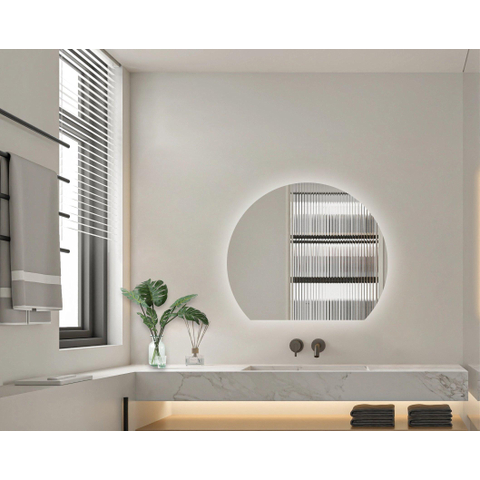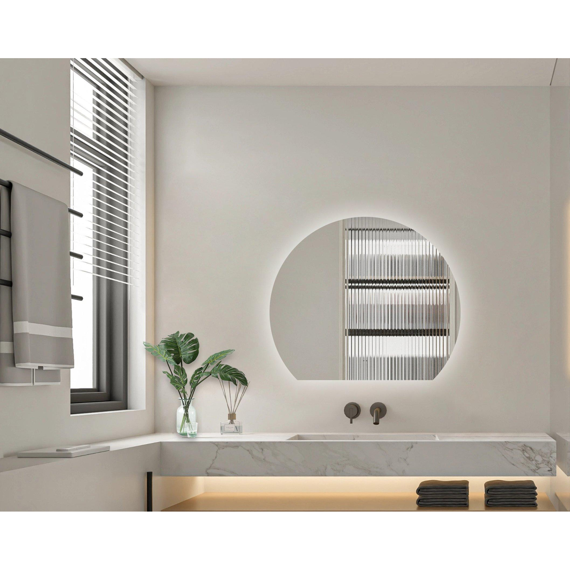 Adema Aura Badkamerpiegel - 80x68.3cm - Halfrond - Horizontaal / Verticaal - Indirecte LED verlichting - Spiegelverwarming - Infrarood