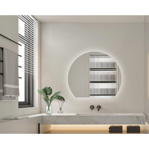 De Adema Aura Badkamerpiegel straalt elegantie uit met zijn halfronde vorm en slanke ontwerp. De combinatie van de perfecte afmetingen en de stijlvolle LED verlichting geeft een luxe uitstraling aan elke badkamer. Of je nu een moderne of klassieke inrichting hebt, deze spiegel past perfect bij elke stijl en voegt een vleugje verfijning toe aan de ruimte.