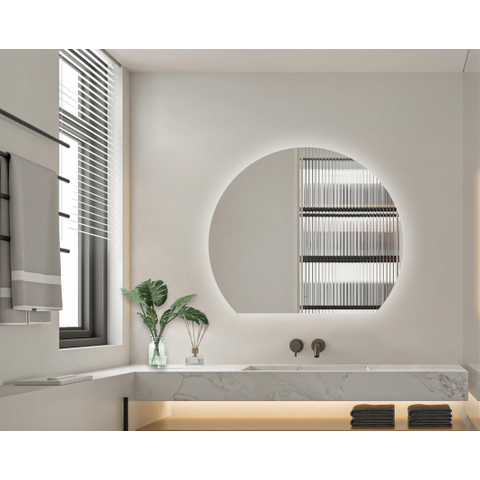 Adema Aura Badkamerpiegel - 100x85.3cm - Halfrond - Horizontaal / Verticaal - indirecte LED verlichting - Spiegelverwarming - Infrarood