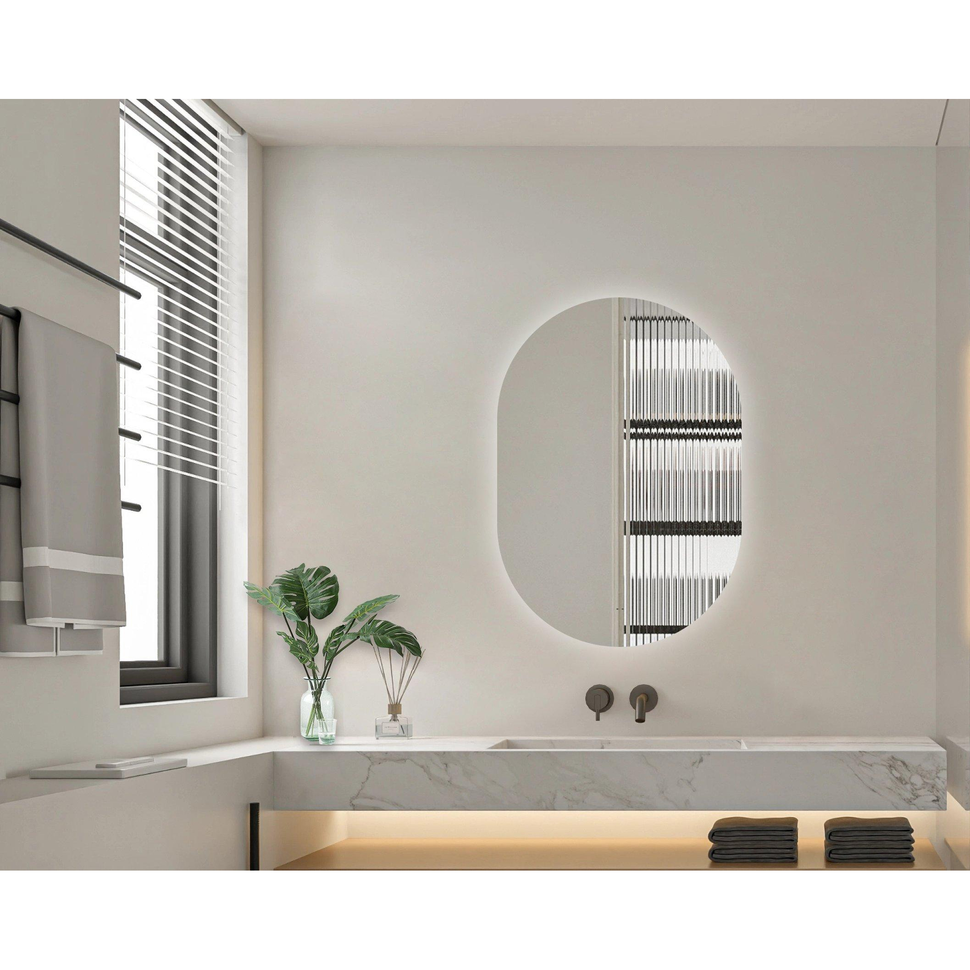 FugaFlow Eccelente Arredo Badkamerpiegel - 70x100cm - Ovaal - Horizontaal / Verticaal - indirecte LED verlichting - Spiegelverwarming - Infrarood -
