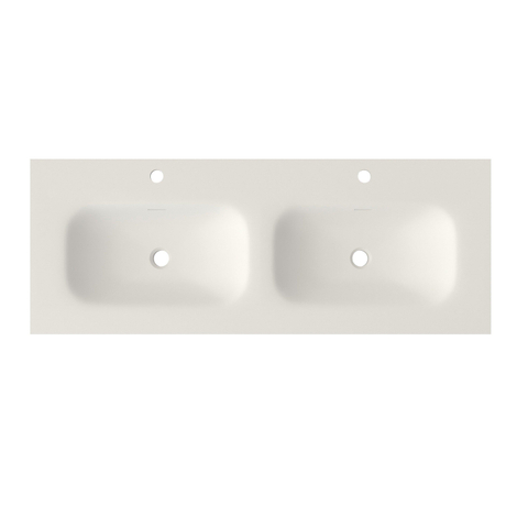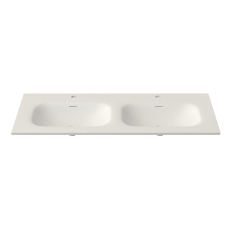 Saniclass Flow Meubelwastafel - 121x46x1.5cm - overloop - 2 wasbakken - 2 kraangaten - solid surface wit mat
