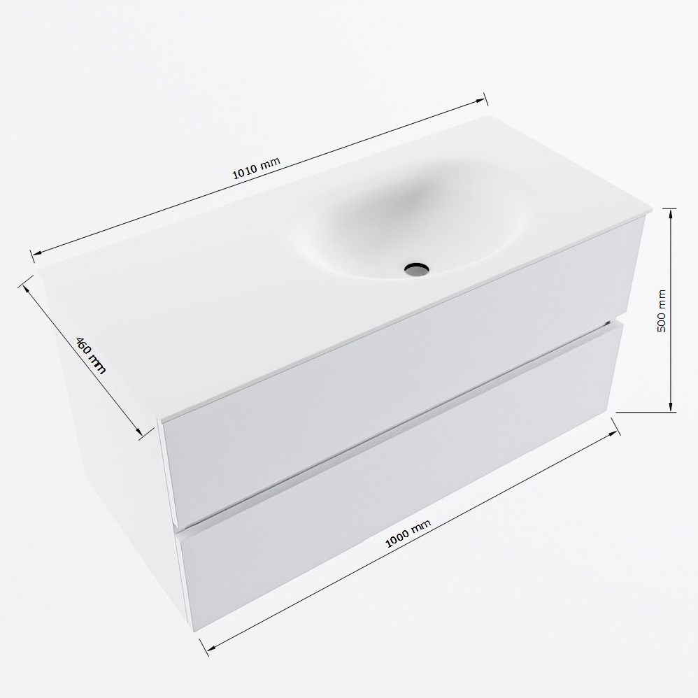 Mondiaz VICA 100cm badmeubel onderkast Chai 2 lades. Wastafel MOON rechts zonder kraangat, kleur Talc.