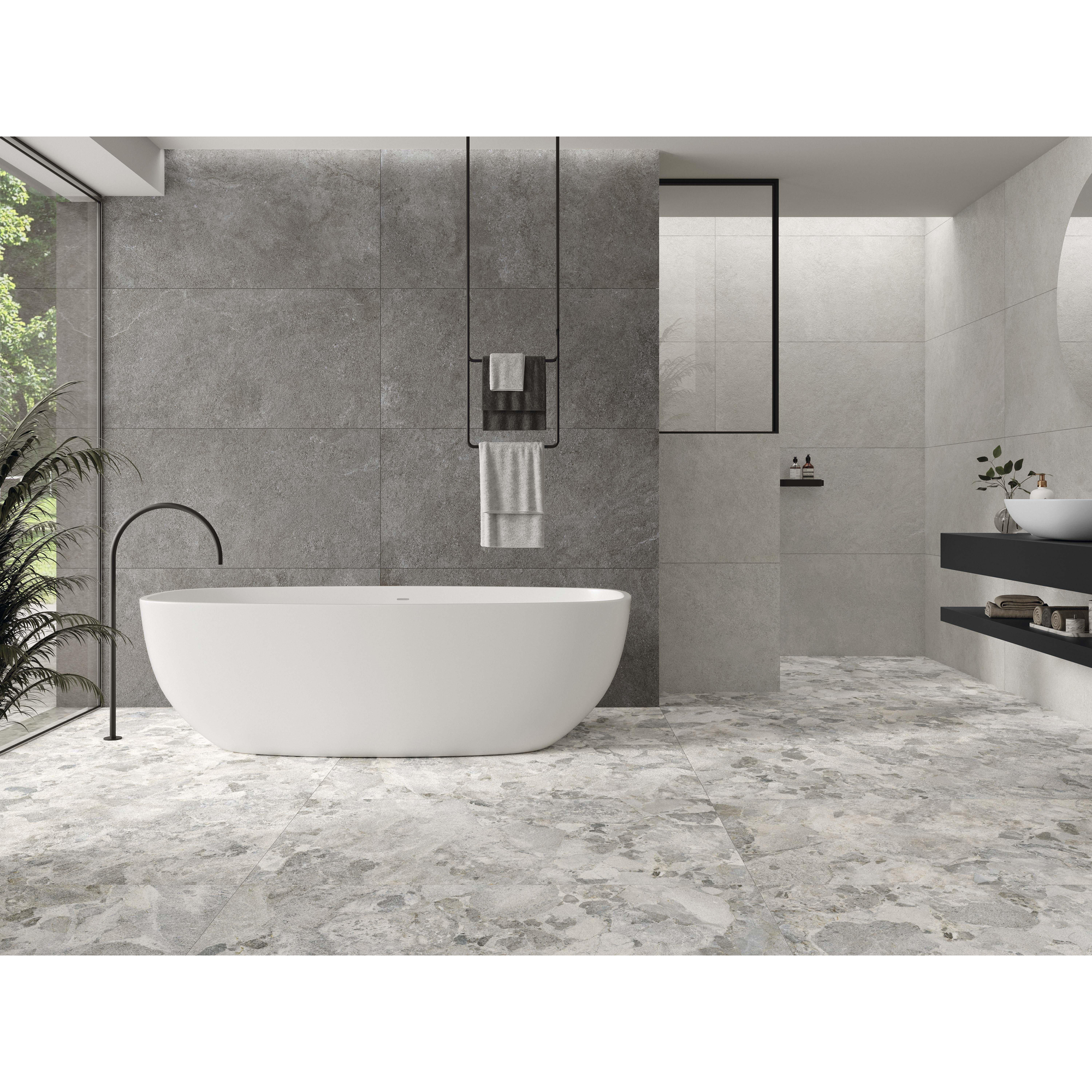 Stijlvol De Larocca tegel straalt stijl en verfijning uit met zijn moderne en strakke ontwerp. De grijze kleur geeft een eigentijdse uitstraling aan elke ruimte en past perfect bij verschillende interieurstijlen. Of je nu een minimalistische look wilt creëren of juist een chique uitstraling wilt toevoegen, deze tegel past zich moeiteloos aan en geeft jouw ruimte een tijdloze elegantie.