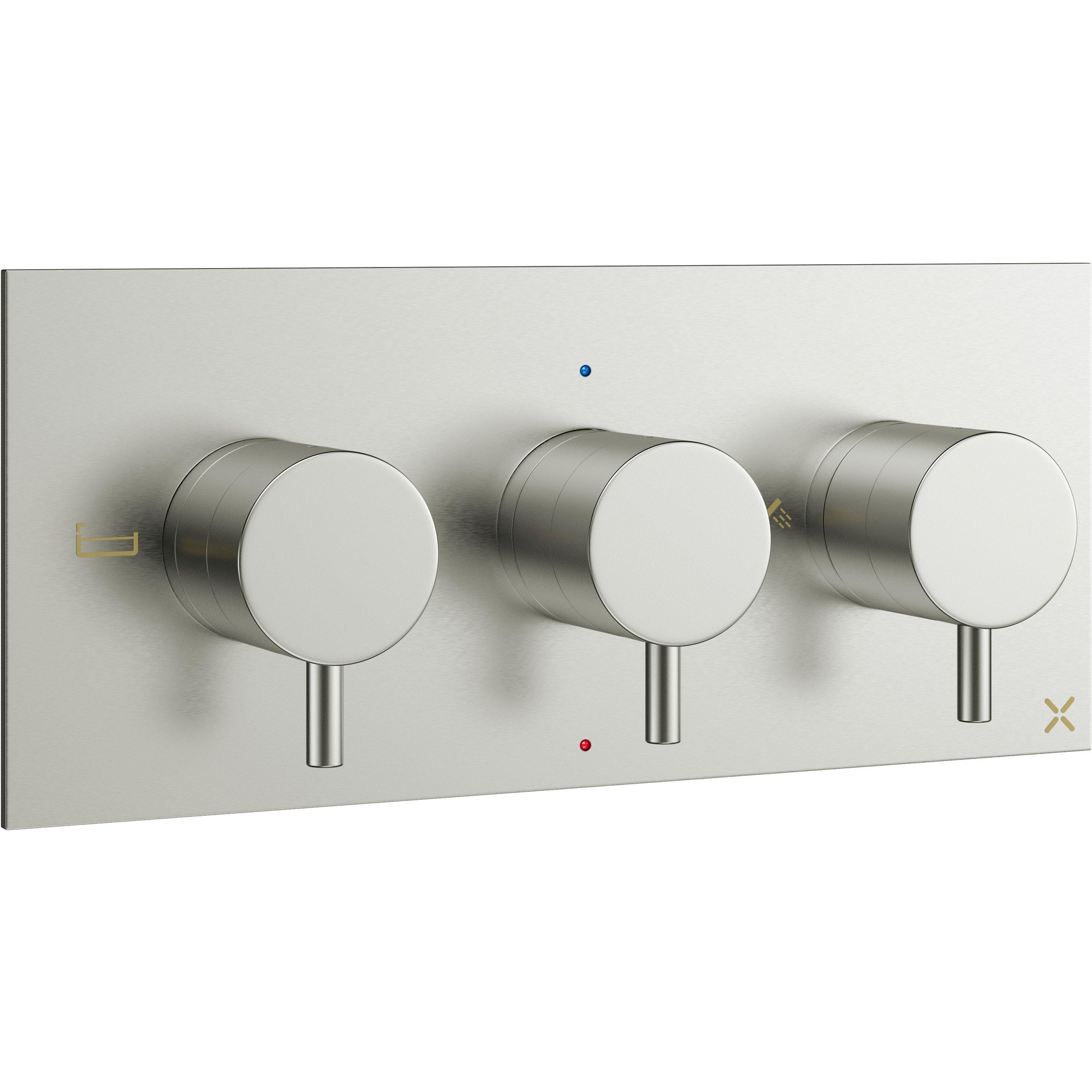 - Afwerkingsset met drie handgrepen, ideaal voor het bedienen van meerdere wateruitgangen in je douchesysteem.