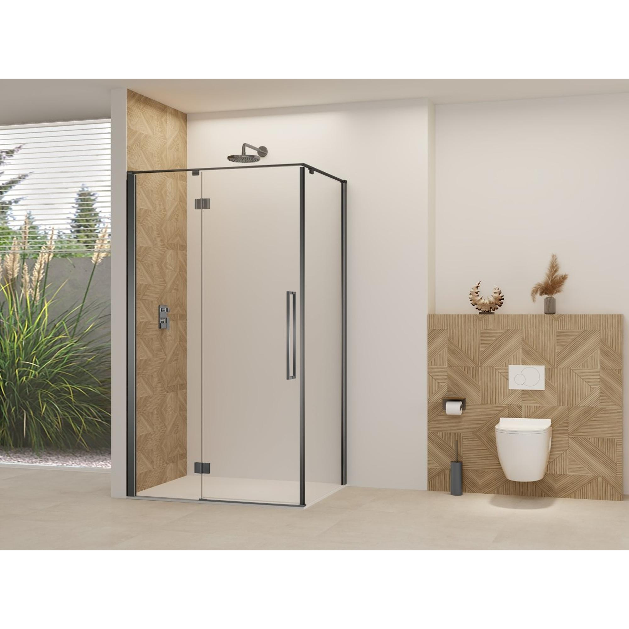 Met deze prachtige deur voor je hoekcabine geef je jouw badkamer direct een moderne en luxe uitstraling. Het heldere glas zorgt voor een open en lichte sfeer, waardoor je badkamer ruimer en frisser aanvoelt. Dankzij de gunmetal geborstelde afwerking krijgt de deur een stoere, eigentijdse look die perfect past bij diverse interieurstijlen. De meegeleverde stabilisatiestang zorgt voor extra stevigheid en stabiliteit, zodat je jarenlang zorgeloos kunt genieten van deze hoogwaardige deur. Of je nu een complete renovatie plant of je douchehoek een upgrade wilt geven, dit product combineert functionaliteit met stijl op een manier die je badkamer transformeert tot een echte eyecatcher.