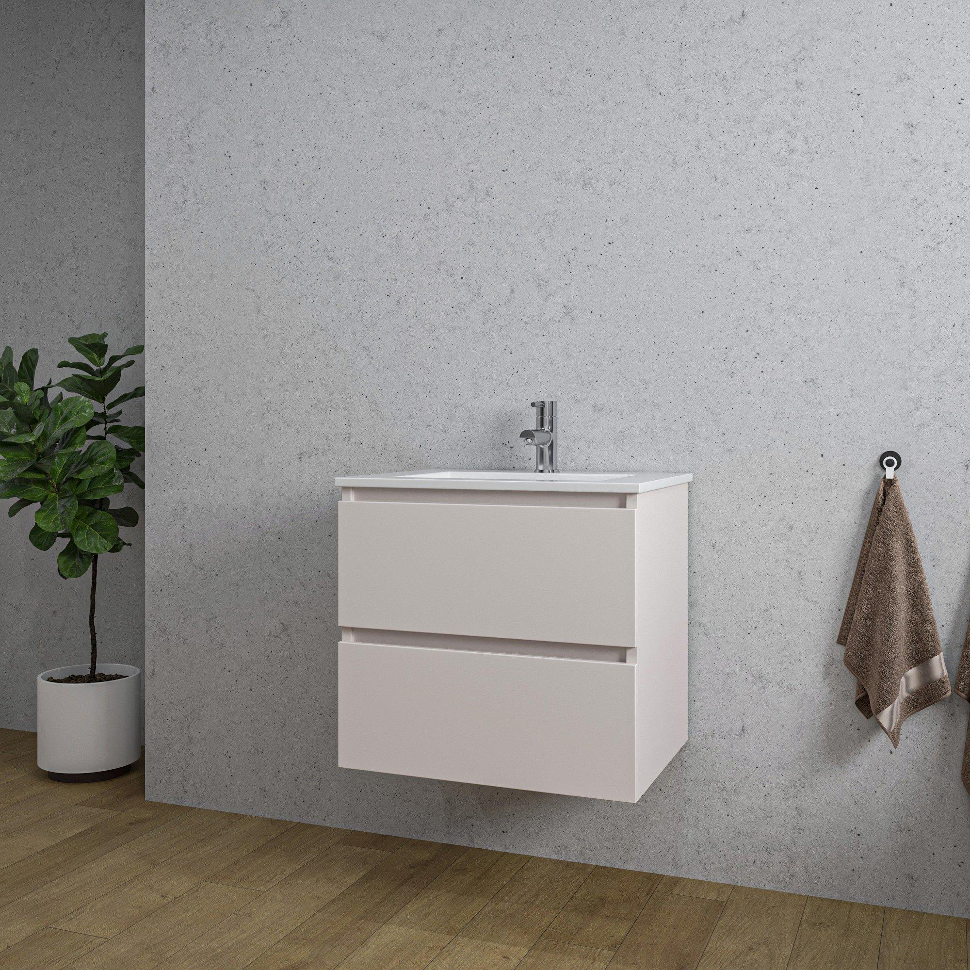 Saniclass Chaci Badkamermeubelset - 60x46x57cm - keramische wastafel wit - 1 wasbak - 1 kraangat - 2 lades - mat cotton (beige)